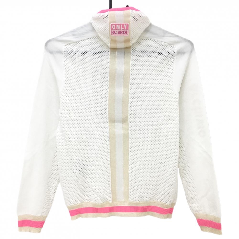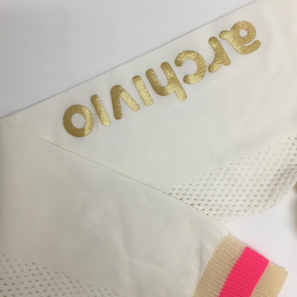 【超美品】アルチビオ セーター 白×ゴールド 一部メッシュ フード風 ニット レディース 36(S) ゴルフウェア 2023年モデル archivio