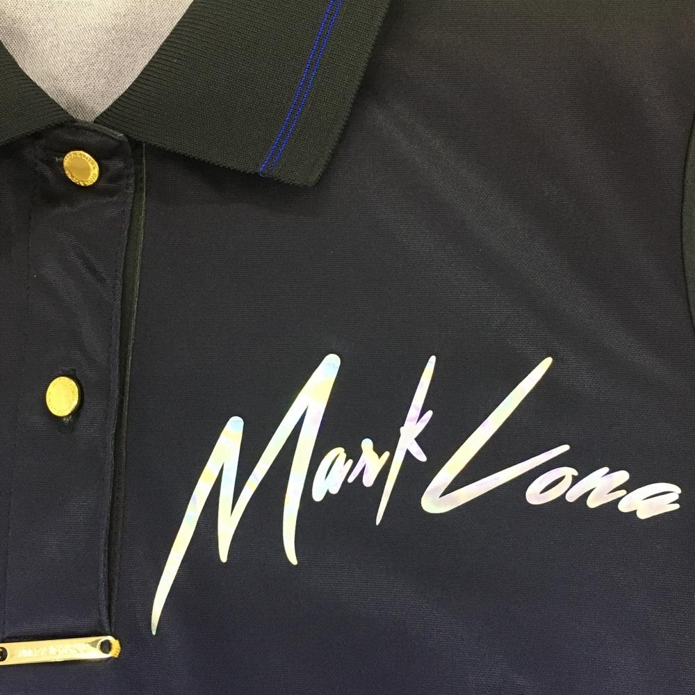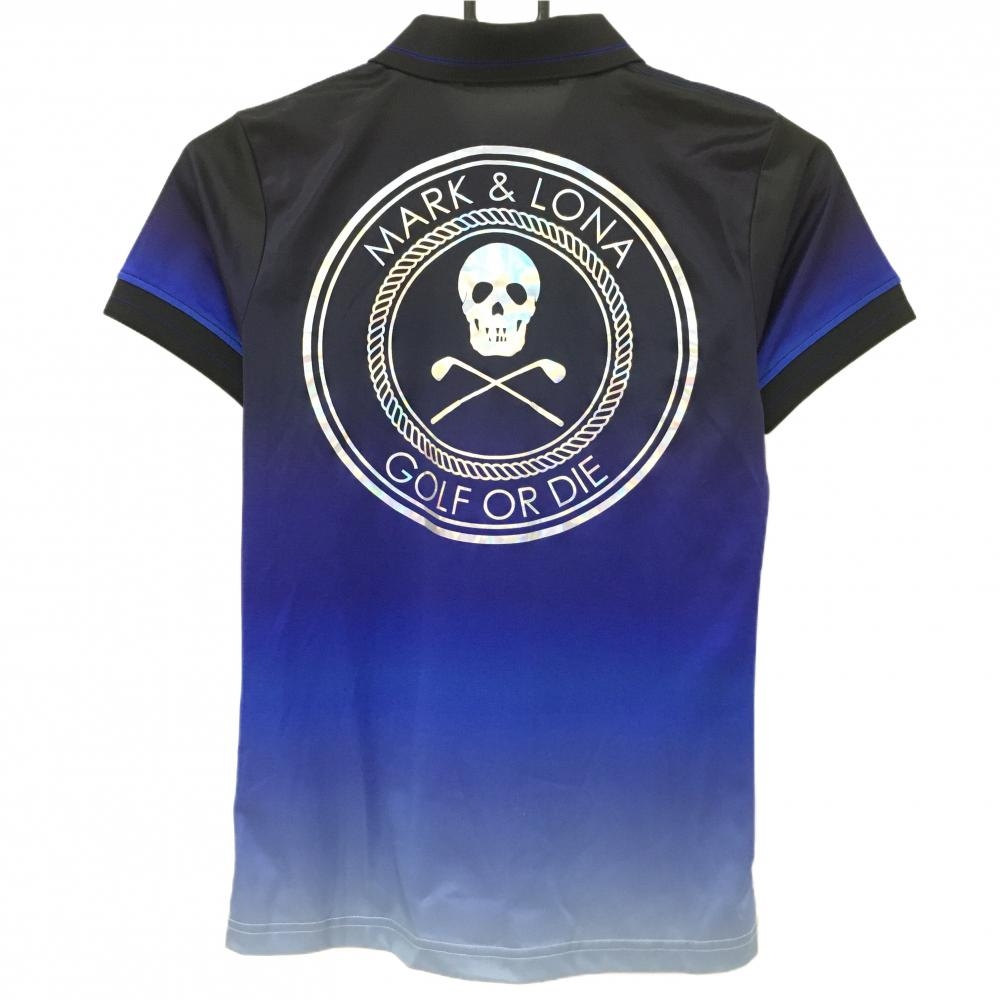 【超美品】マークアンドロナ 半袖ポロシャツ ネイビー グラデーション 背面ビッグプリント レディース 36(S) ゴルフウェア MARK&LONA