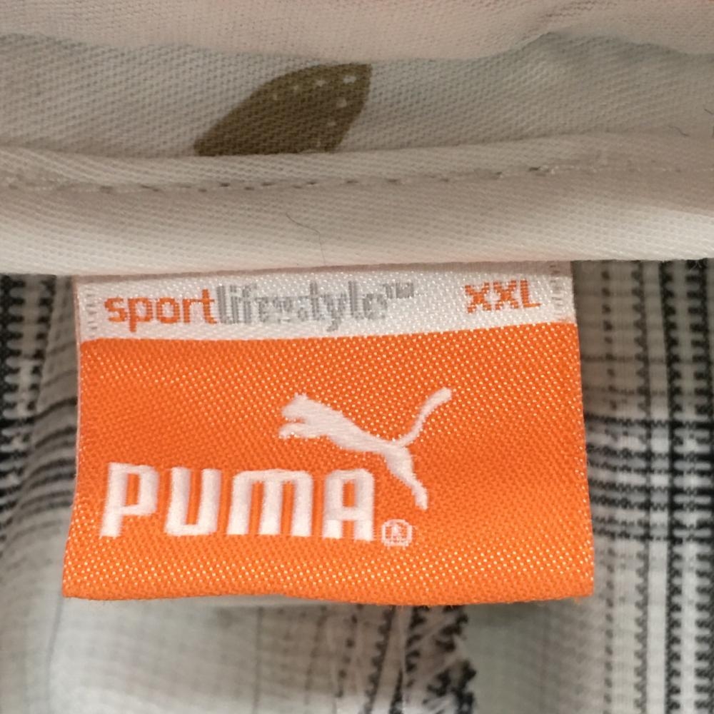 プーマ ハーフパンツ 白×黒 格子柄 ロゴ刺しゅう メンズ XXL ゴルフウェア PUMA