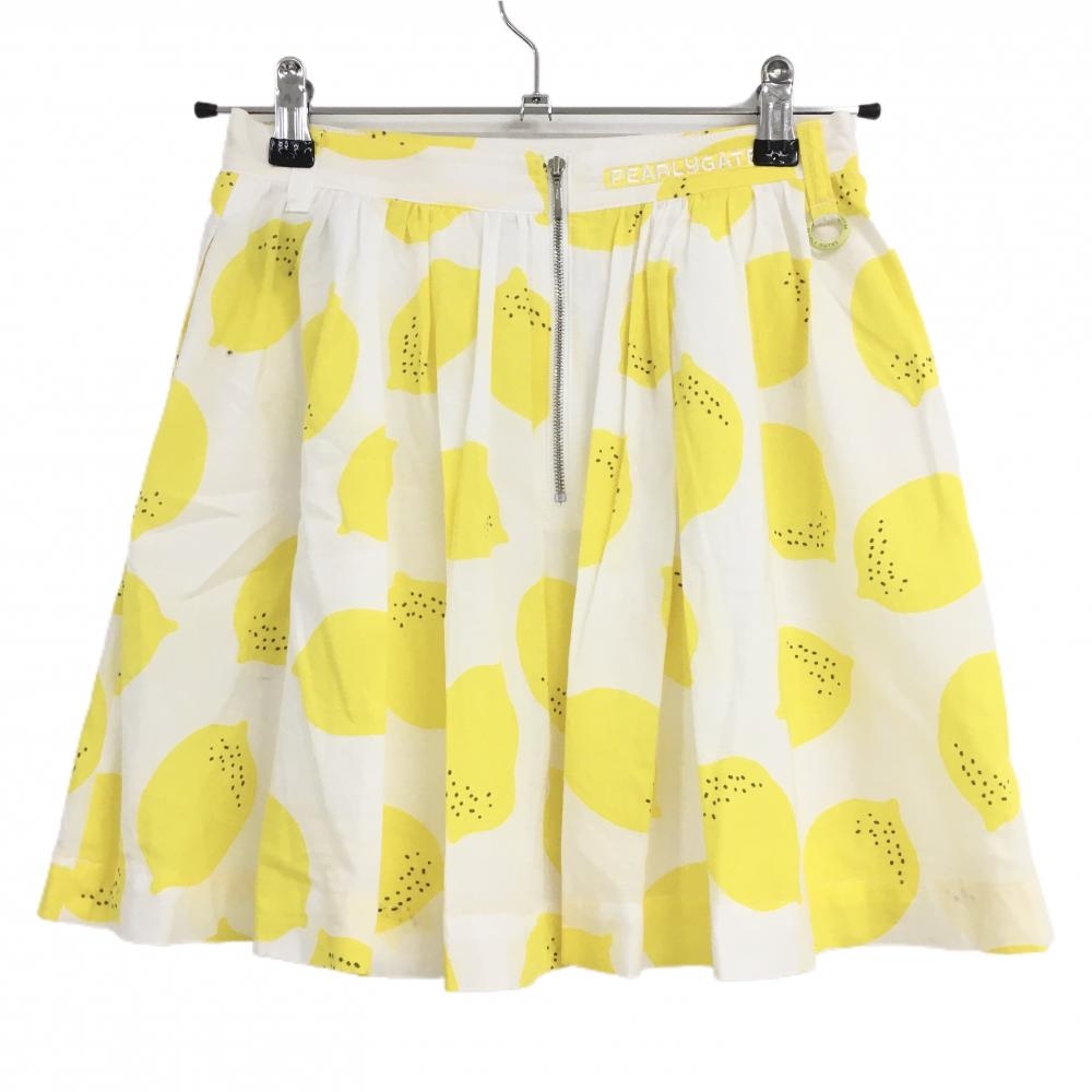 【超美品】パーリーゲイツ スカート 白×イエロー レモン柄 内側インナーパンツ レディース 0(S) ゴルフウェア PEARLY GATES