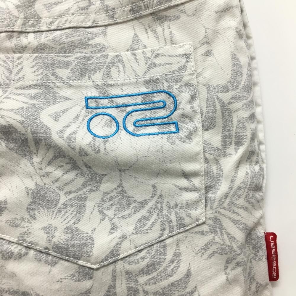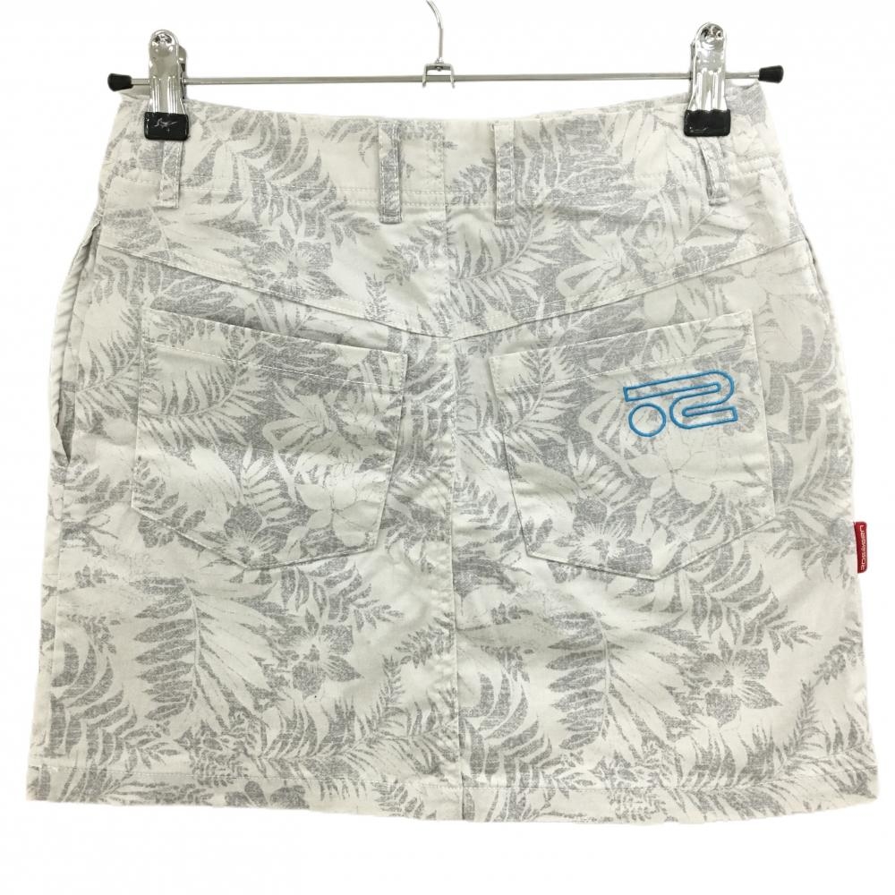 【美品】ロサーセン スカート 白×グレー リーフ柄 花 レディース S ゴルフウェア Rosasen