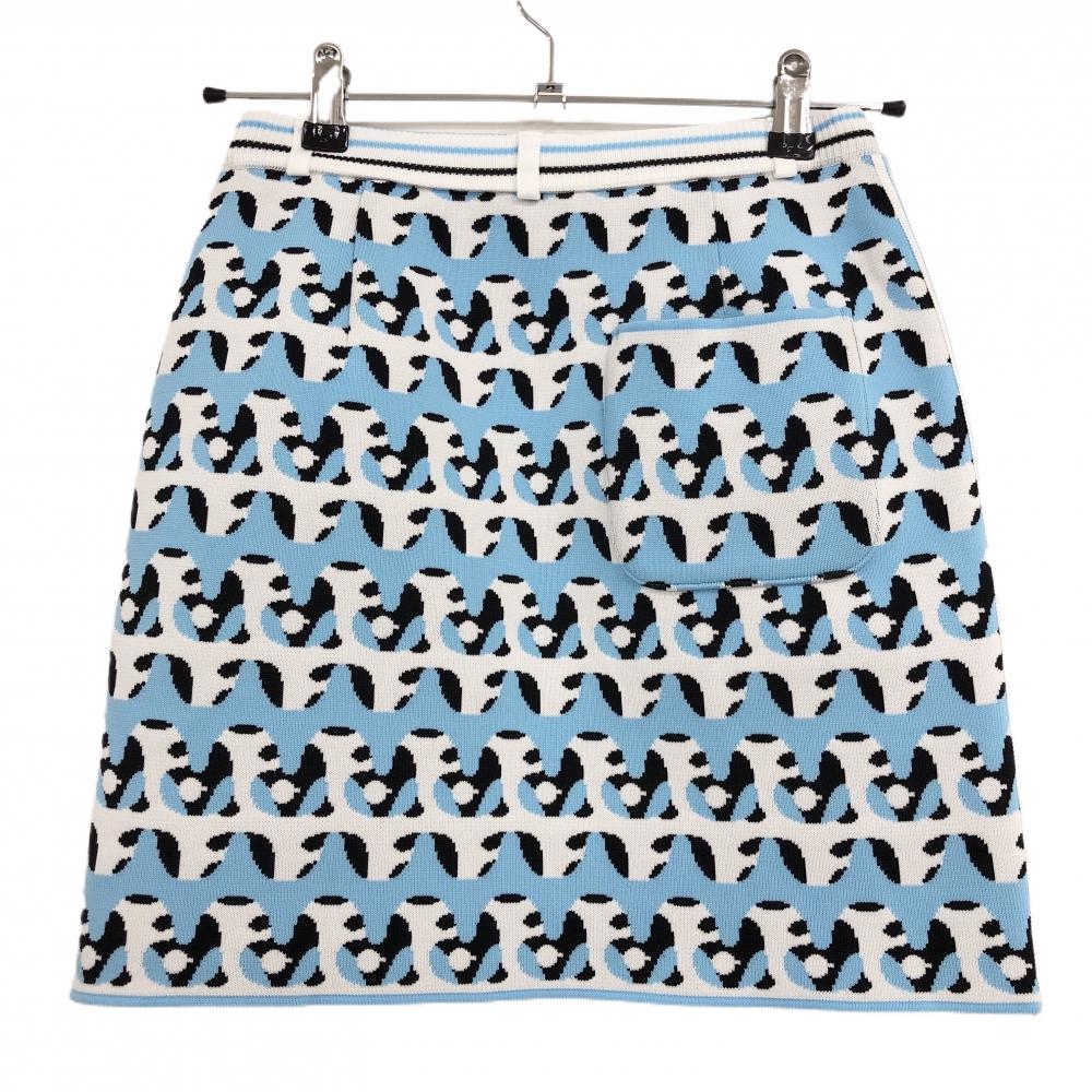 【超美品】アルチビオ ニットスカート 白×ライトブルー×黒 ロゴ総柄 レディース 36(S) ゴルフウェア archivio