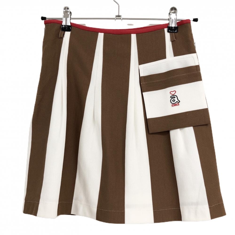 【新品】アルチビオ スカート ブラウン×白 ストライプ 裏地付 吸汗速乾 レディース 36(S) ゴルフウェア archivio
