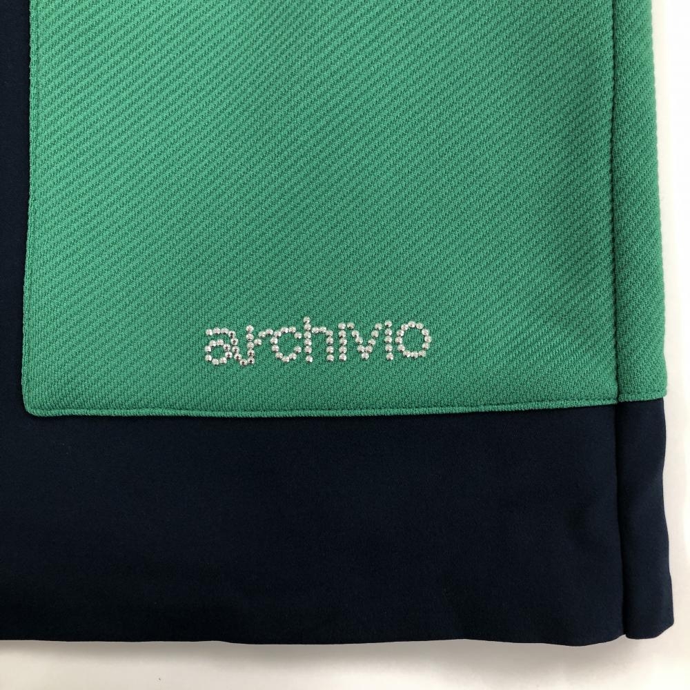 【超美品】アルチビオ スカート グリーン×ネイビー ラインストーンロゴ レディース 36(S) ゴルフウェア archivio