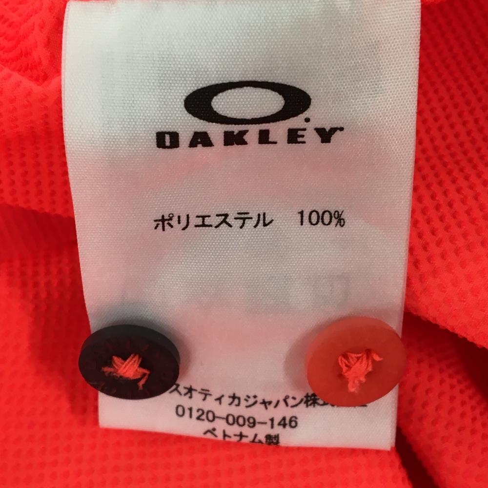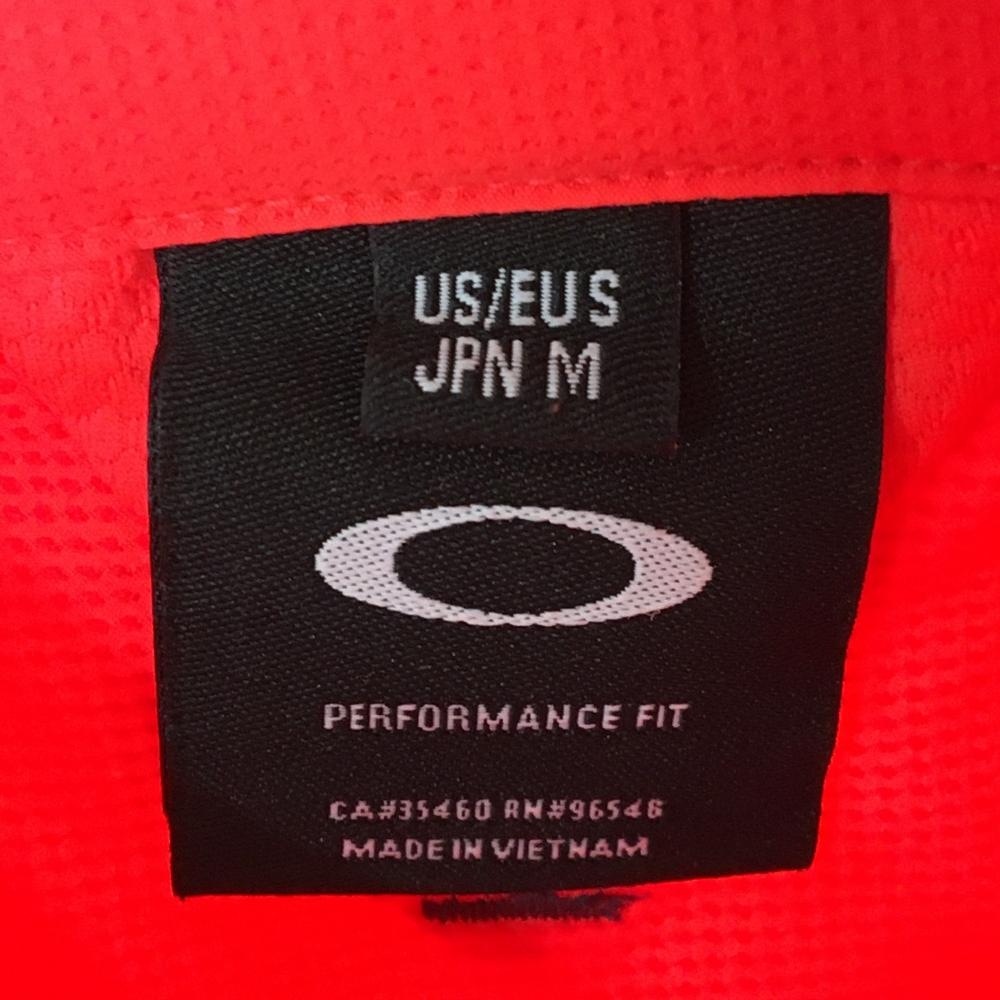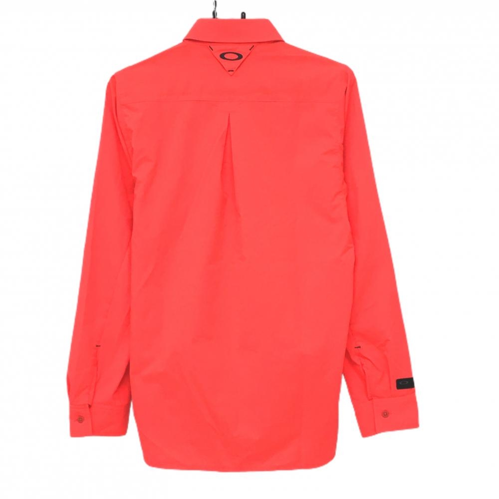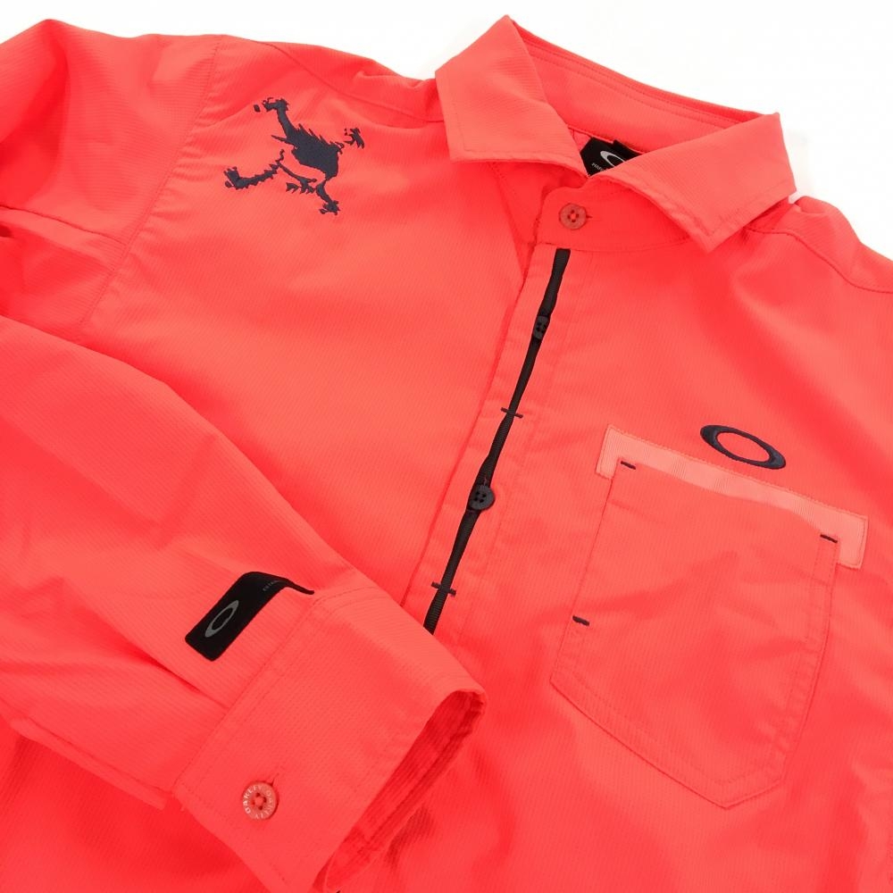 【超美品】オークリー 長袖シャツ 蛍光レッドオレンジ ストライプ地模様 ストレッチ スカル メンズ M ゴルフウェア Oakley