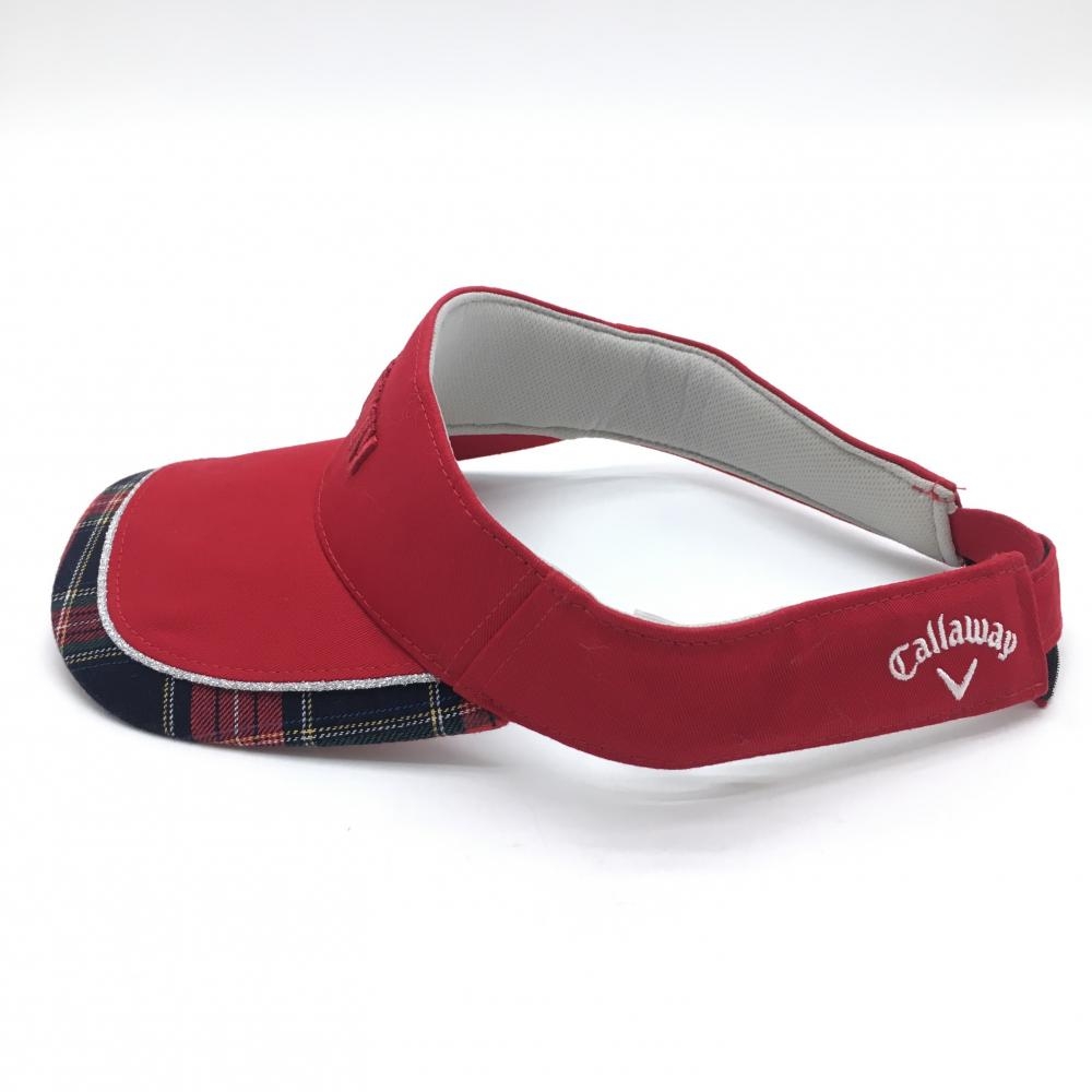 キャロウェイ サンバイザー レッド×ネイビー つば縁チェック 立体ロゴ刺しゅう FR ゴルフウェア Callaway
