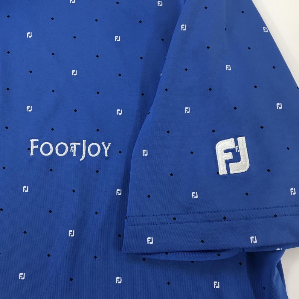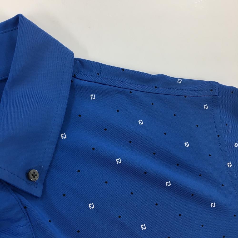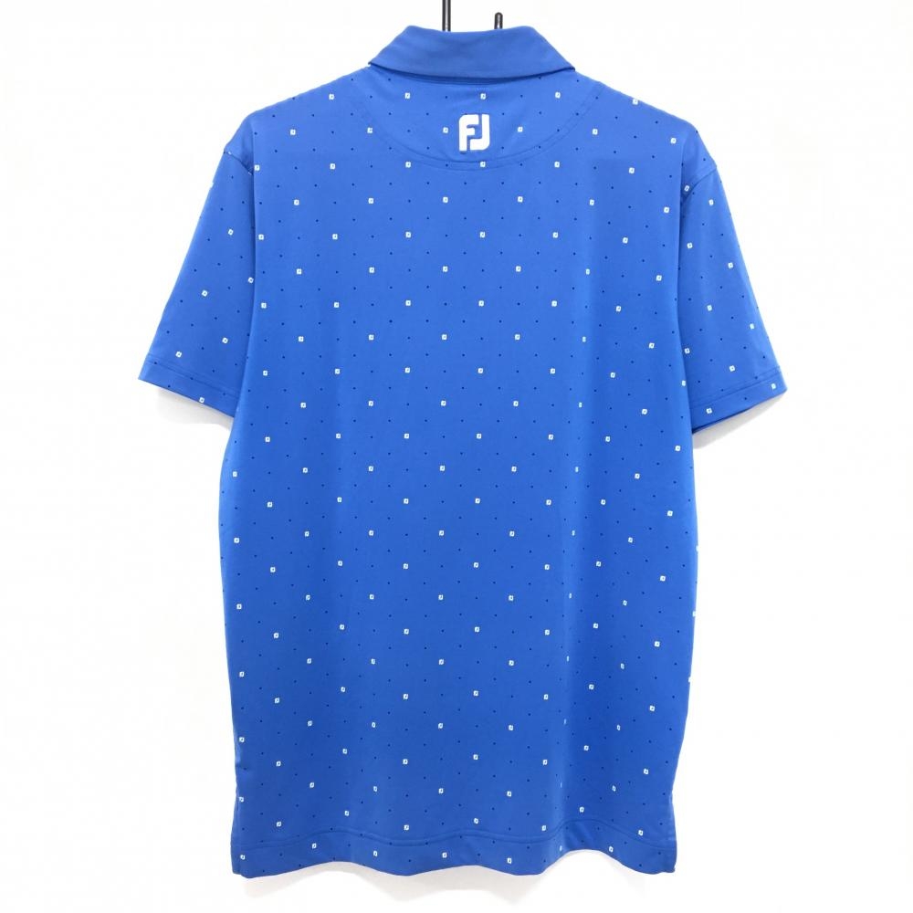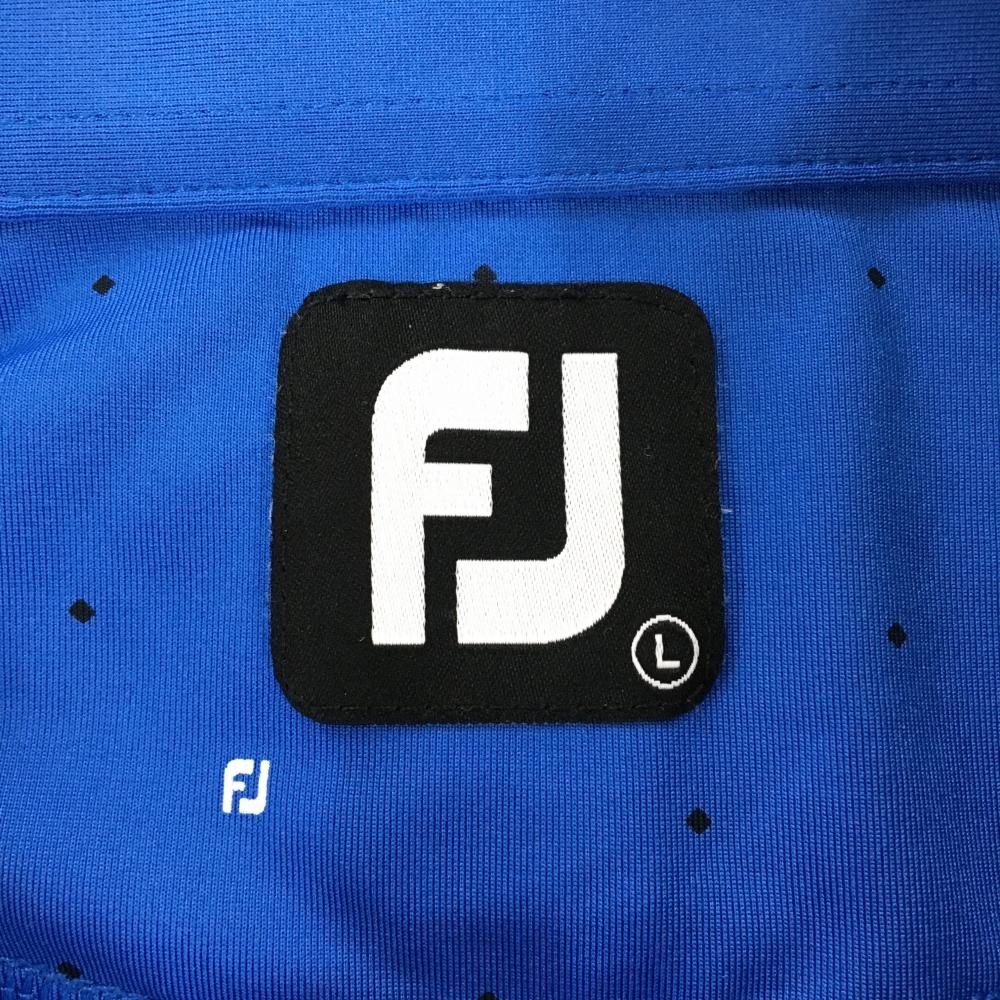 フットジョイ 半袖ポロシャツ ブルー×黒 スクエアドット柄 袖ロゴ刺しゅう メンズ L ゴルフウェア FootJoy