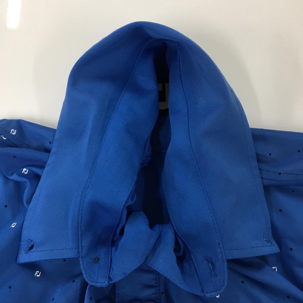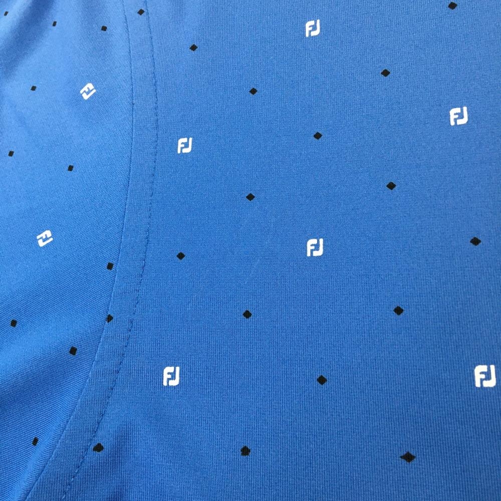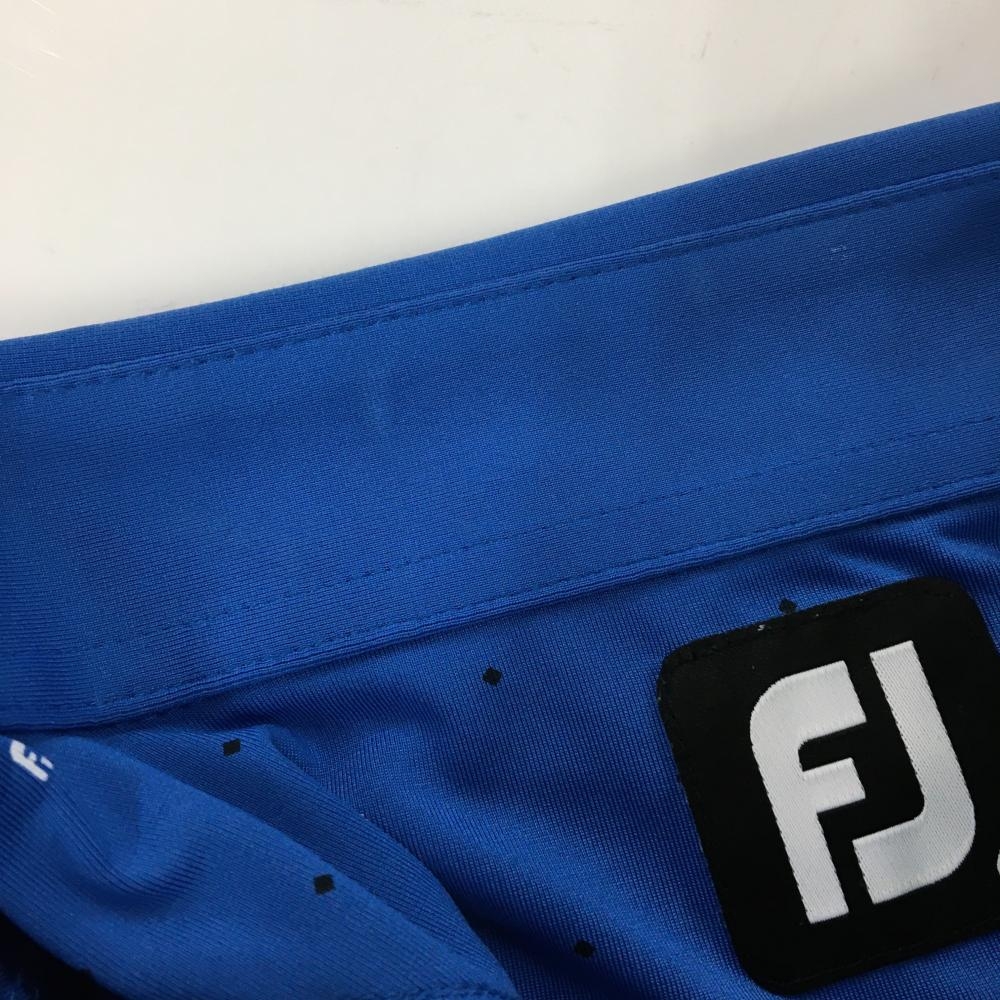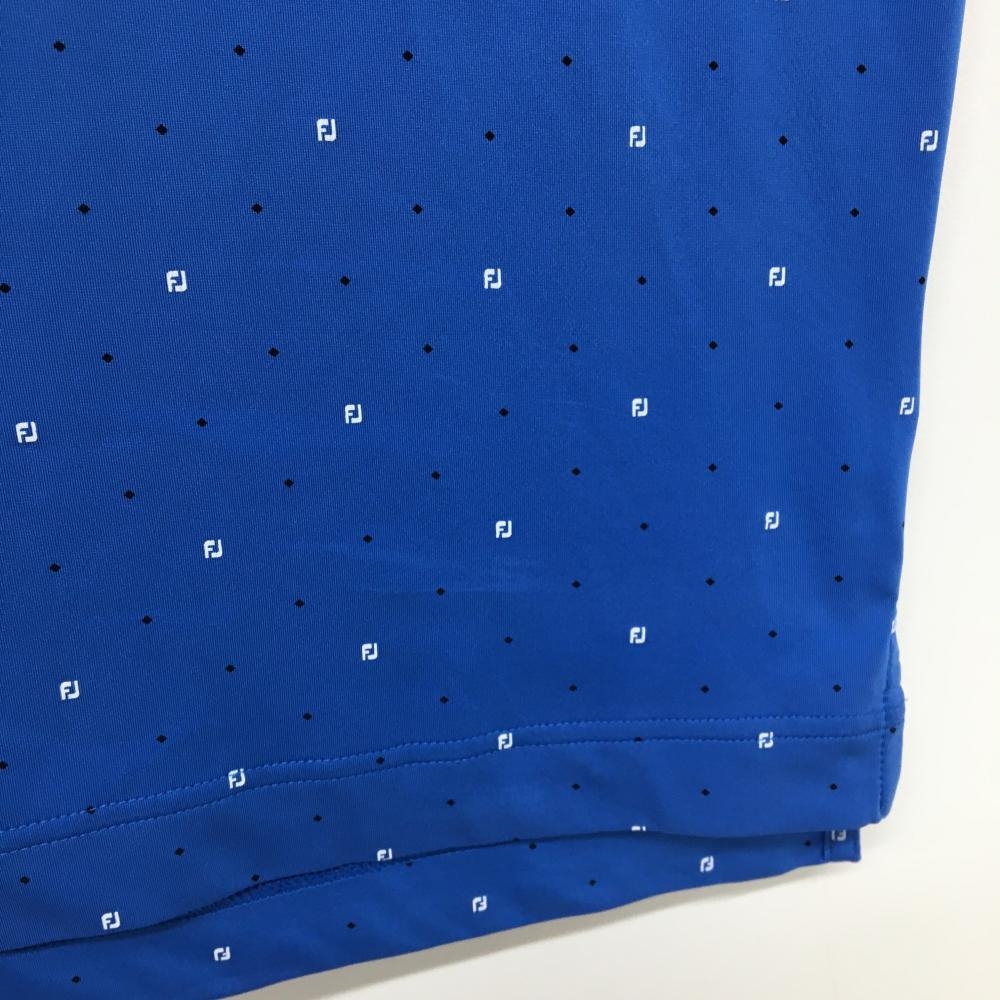 フットジョイ 半袖ポロシャツ ブルー×黒 スクエアドット柄 袖ロゴ刺しゅう メンズ L ゴルフウェア FootJoy