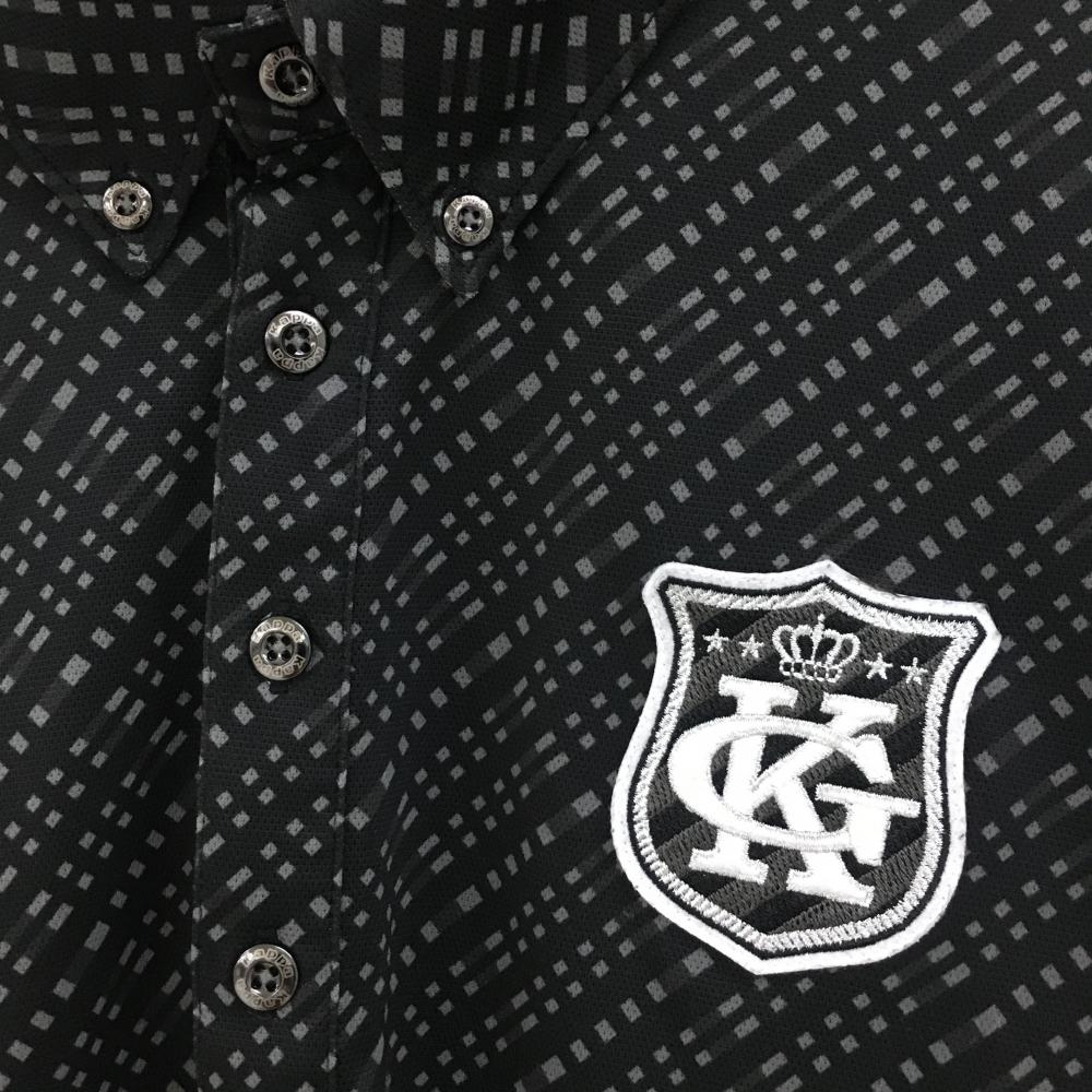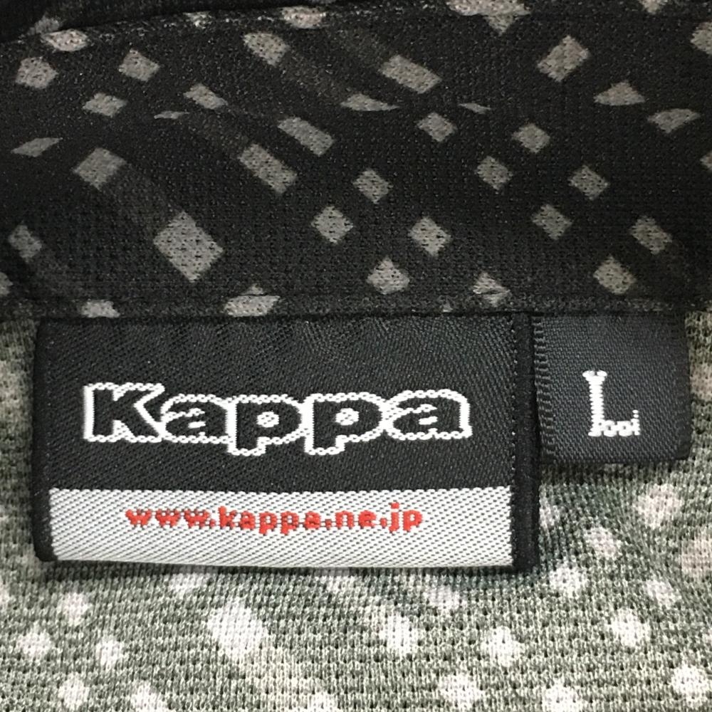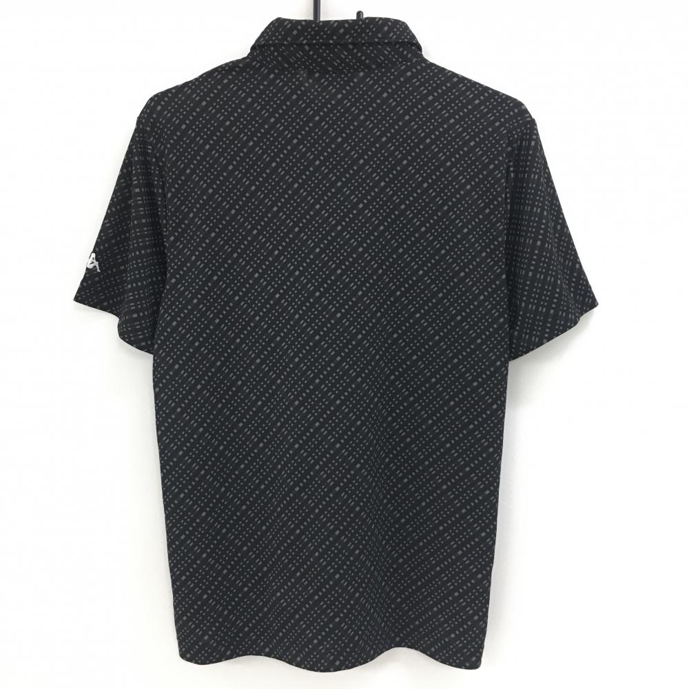 【超美品】カッパ 半袖ポロシャツ 黒×グレー 総柄 袖ロゴ 胸元ワッペン メンズ L ゴルフウェア Kappa