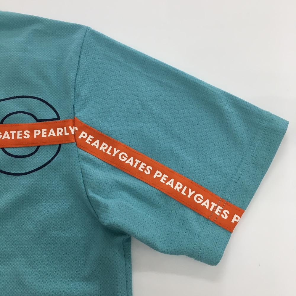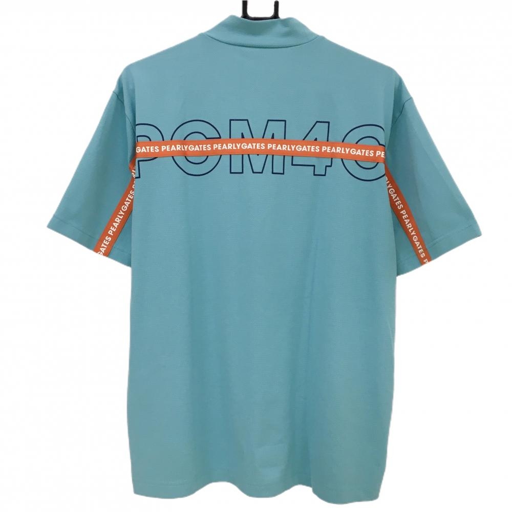 【超美品】パーリーゲイツ 半袖ハイネックシャツ ライトブルー×オレンジ 背面ロゴライン メンズ 6(XL) ゴルフウェア PEARLY GATES