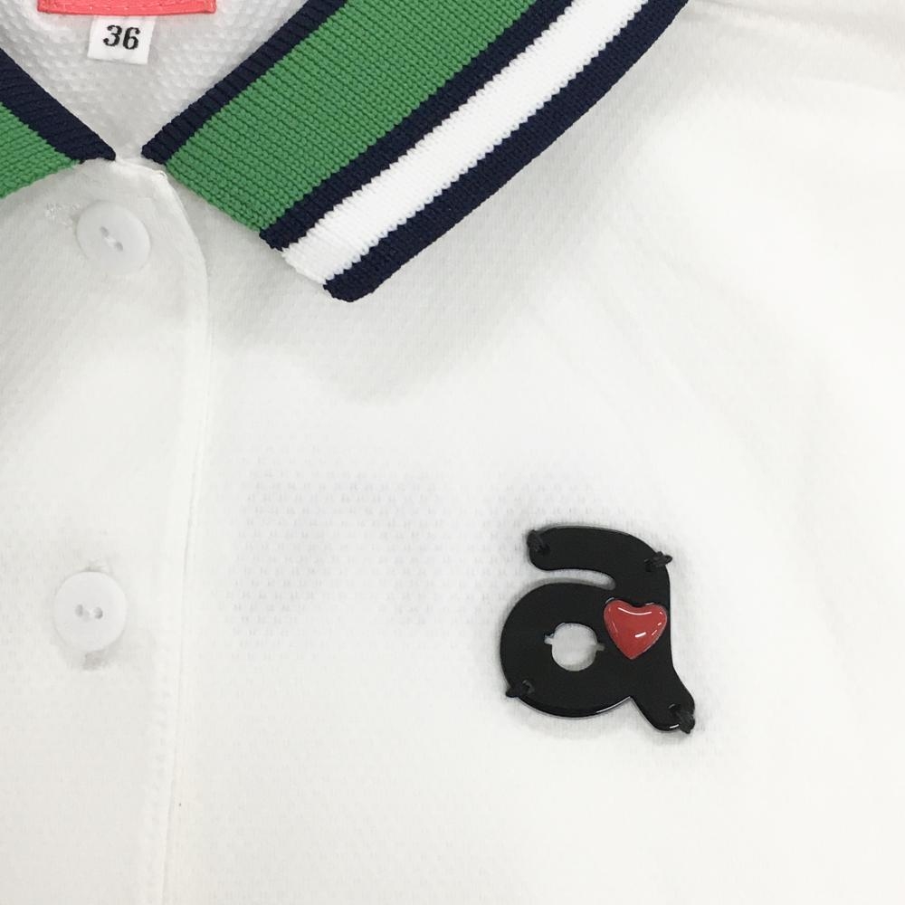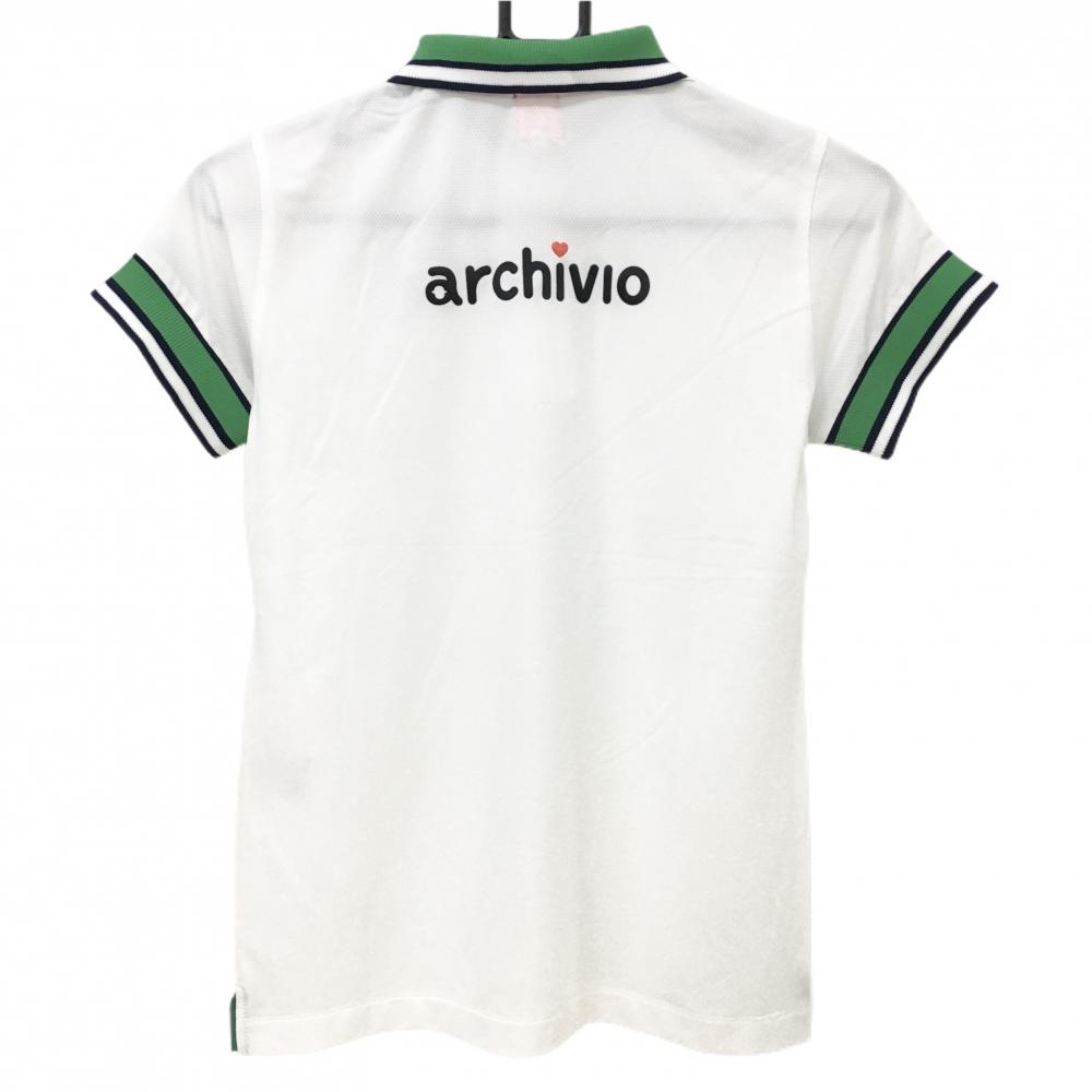 【超美品】アルチビオ 半袖ポロシャツ 白×グリーン 襟袖口ライン レディース 36(S) ゴルフウェア archivio