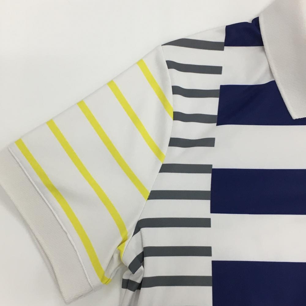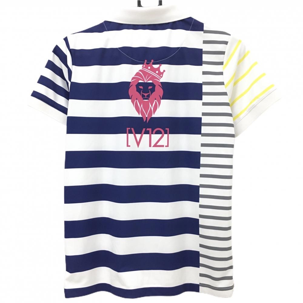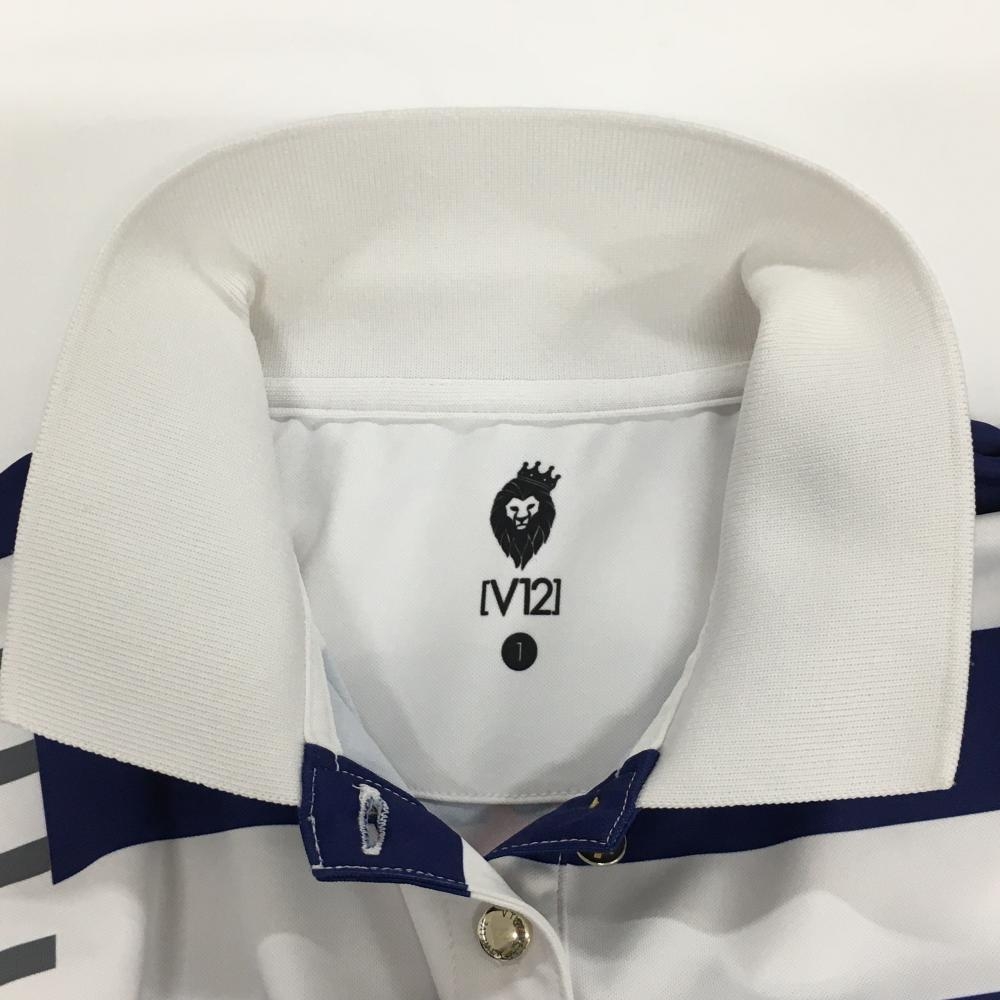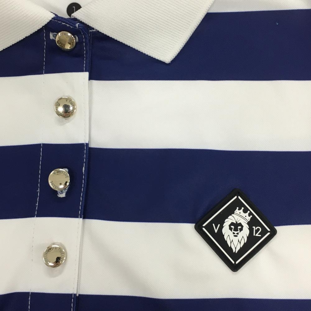 【美品】V12 半袖ポロシャツ 白×ネイビー ボーダー 襟薄汚れ レディース 1(M) ゴルフウェア V12