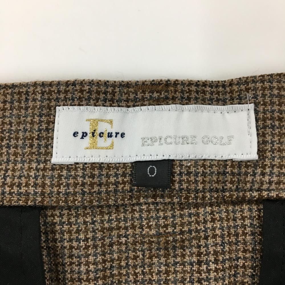 【美品】エピキュールゴルフ スカート ブラウン チェック風 ウール混 レディース O ゴルフウェア EPICURE