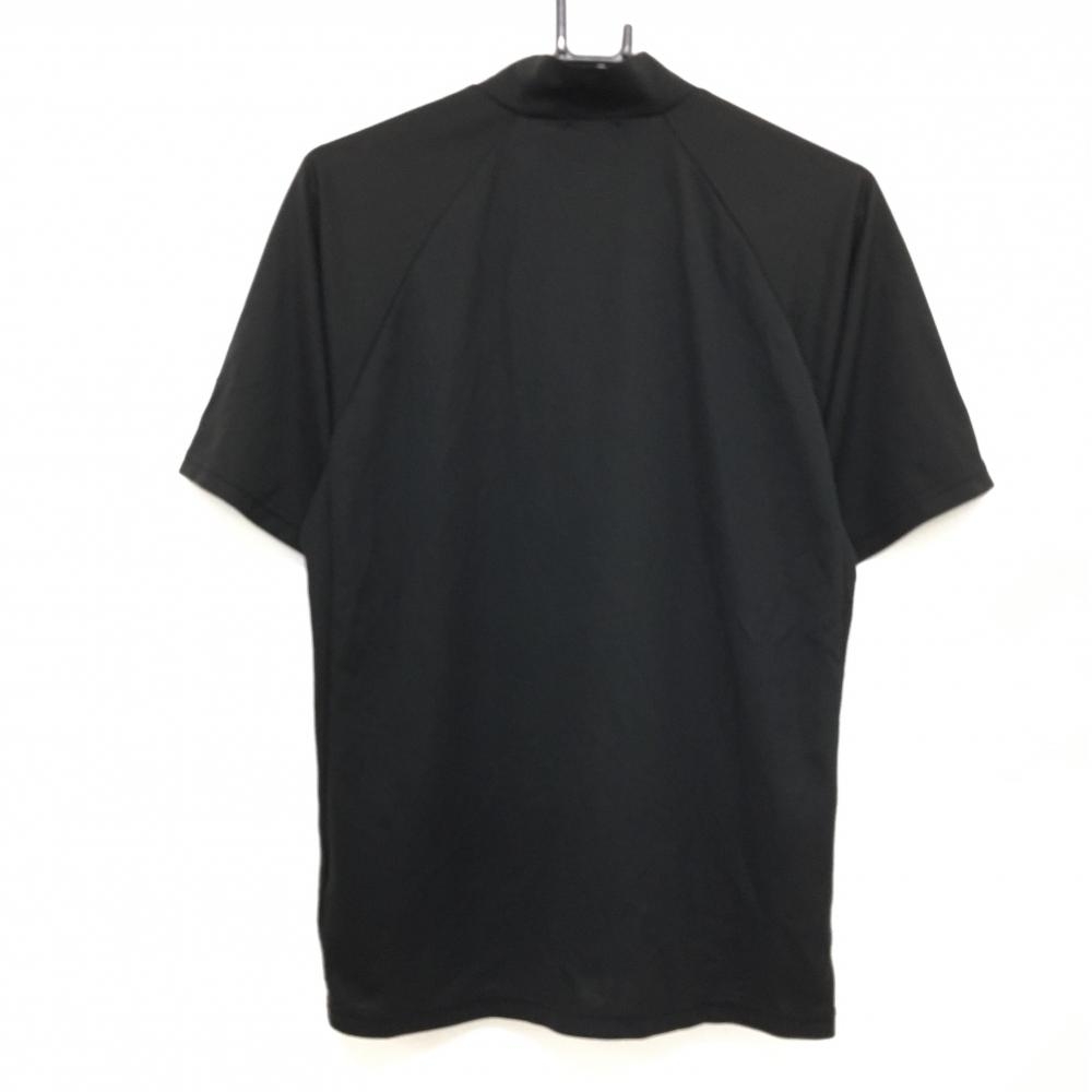 【超美品】アディダス 半袖ハイネックシャツ 黒 ハーフジップ ロゴ刺しゅう メンズ L ゴルフウェア adidas