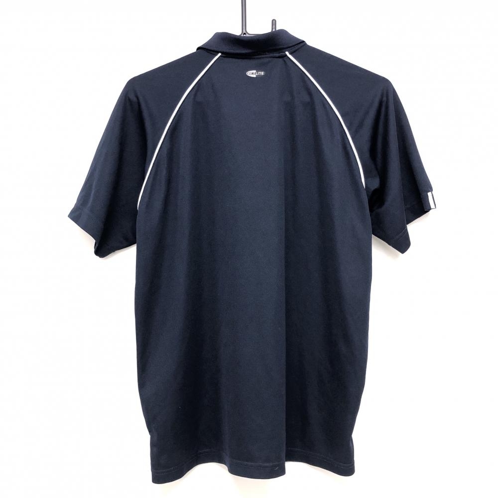 【美品】アディダス 半袖ポロシャツ ネイビー×白 袖口3ライン パイピングライン メンズ L ゴルフウェア adidas