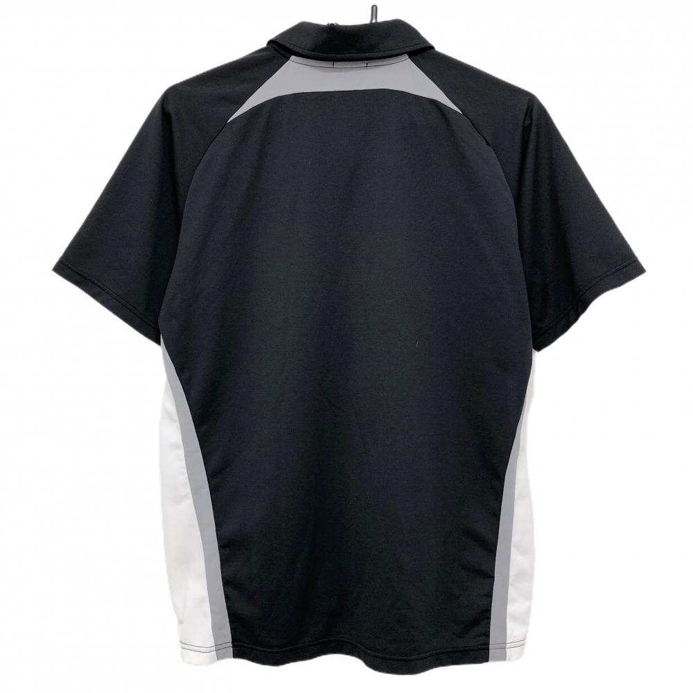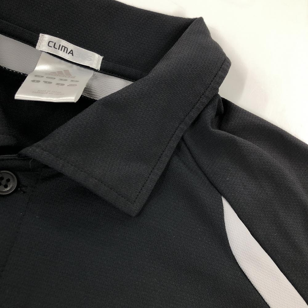 アディダス 半袖ポロシャツ 黒×グレー サイドメッシュ調 ロゴプリント メンズ L ゴルフウェア adidas