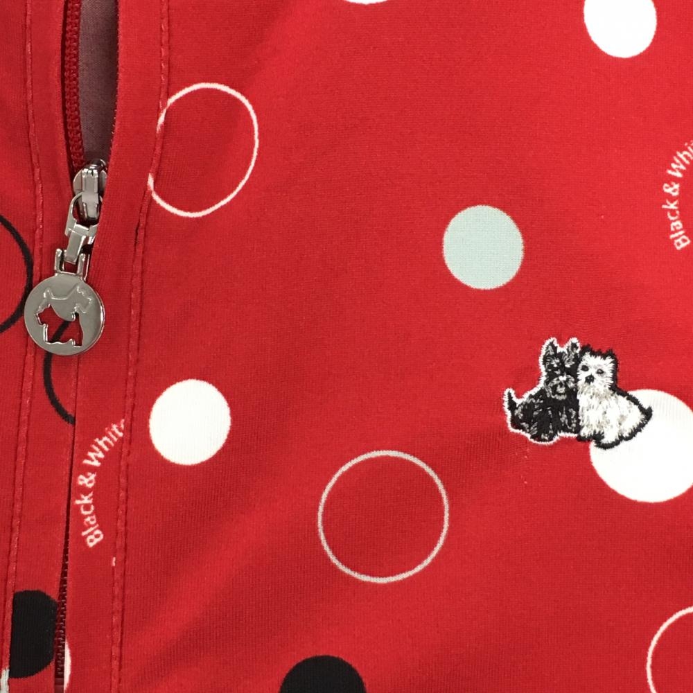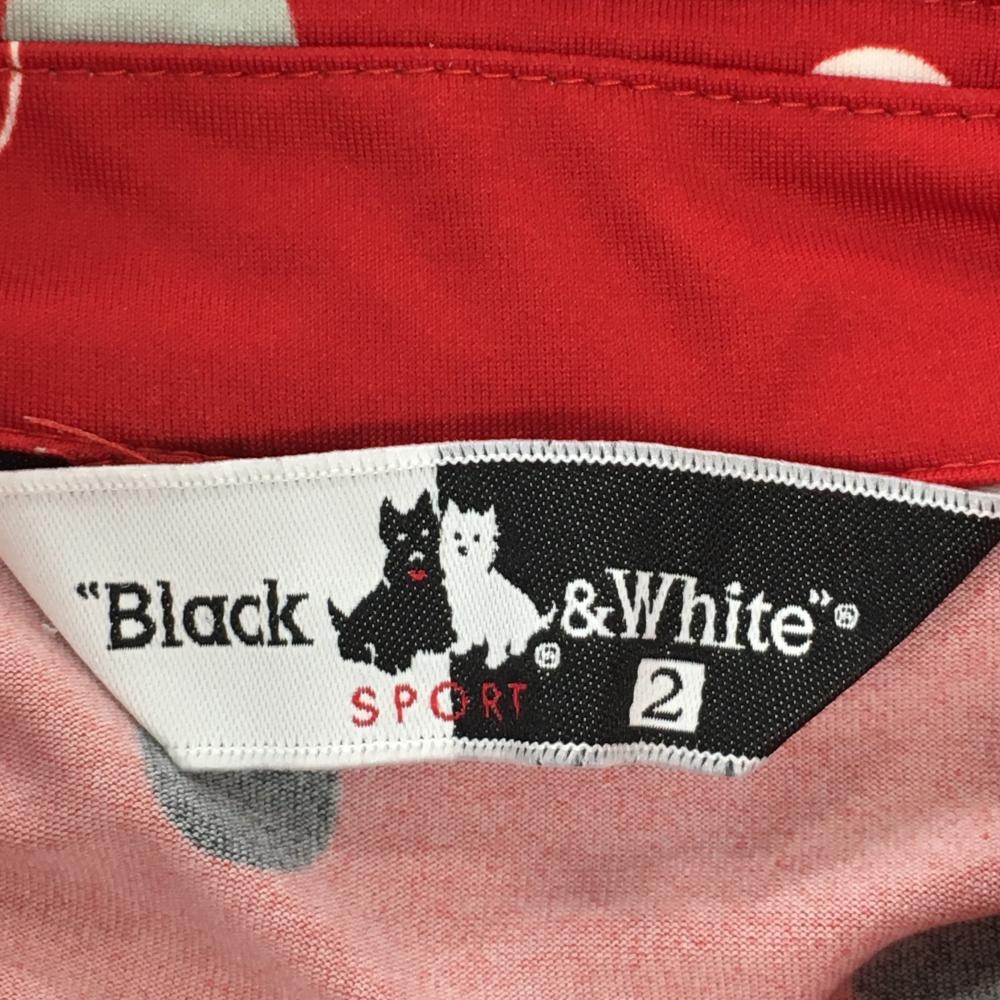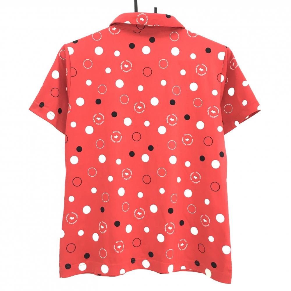 【超美品】ブラックアンドホワイト 半袖ハイネックシャツ レッド×白 ドット調 胸元ロゴ レディース 2(M) ゴルフウェア Black&White
