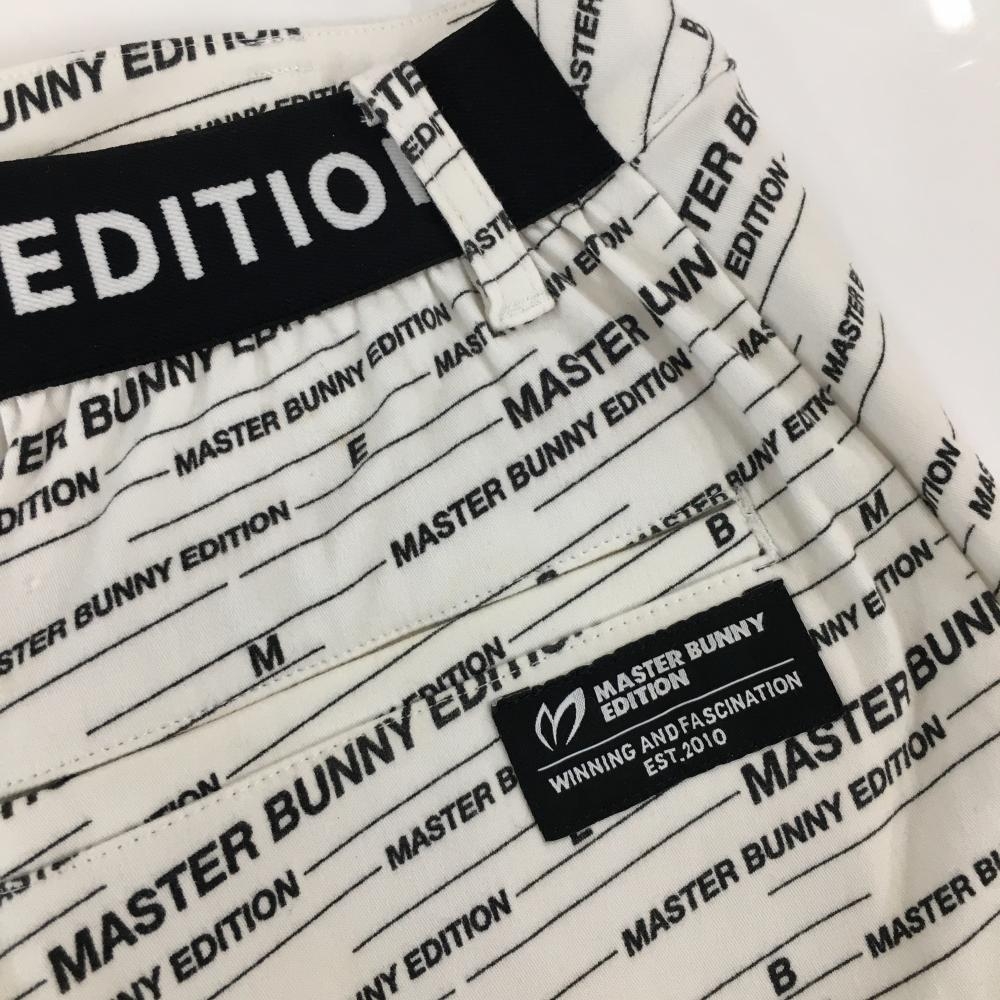 【美品】マスターバニー スカート 白×黒 斜めロゴ総柄 ストレッチ レディース 0(S) ゴルフウェア MASTER BUNNY EDITION