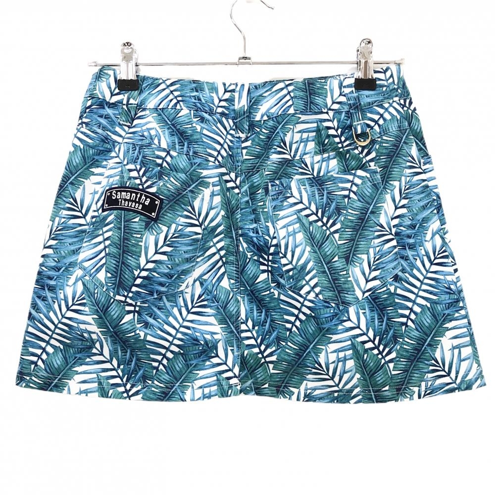 【超美品】サマンサタバサ№7 スカート ブルーグリーン×白 リーフ柄 レディース 38(M) ゴルフウェア Samantha Thavasa