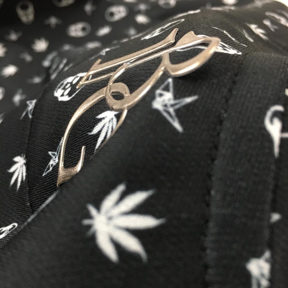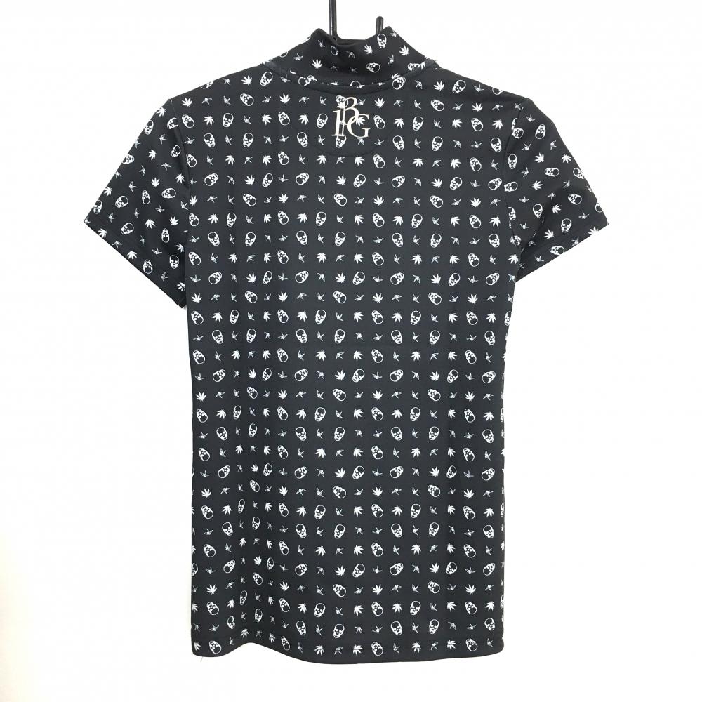 ウノピゥウノウグァーレトレ×ルシアンペラフィネ 半袖ハイネックシャツ 黒×白 スカル柄 レディース I(S) ゴルフウェア 1PIU1UGUALE3