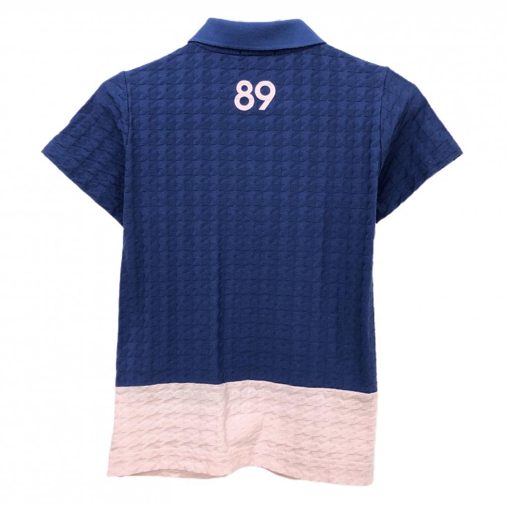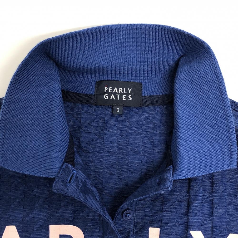 【美品】パーリーゲイツ 半袖ポロシャツ ネイビー×ピンク 千鳥格子地模様 レディース 0(S) ゴルフウェア PEARLY GATES