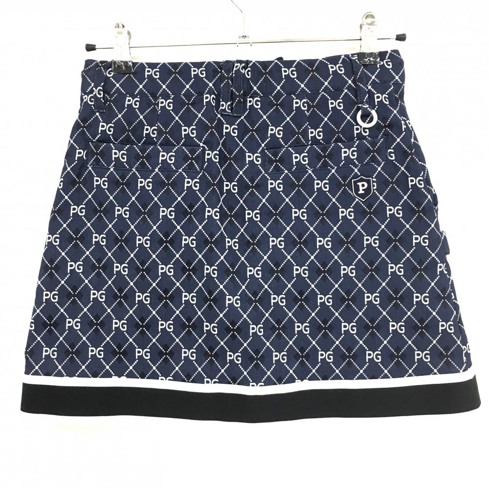 【超美品】パーリーゲイツ スカート ネイビー×白ロゴ総柄 格子柄 レディース 0(S) ゴルフウェア PEARLY GATES
