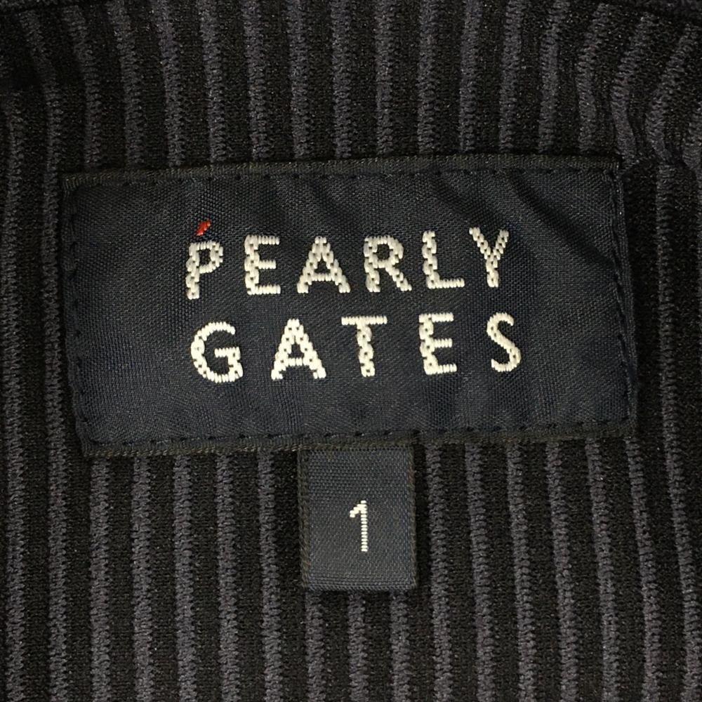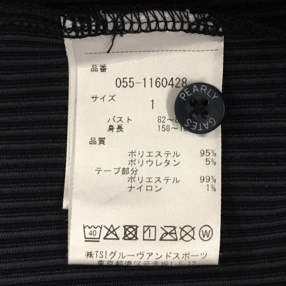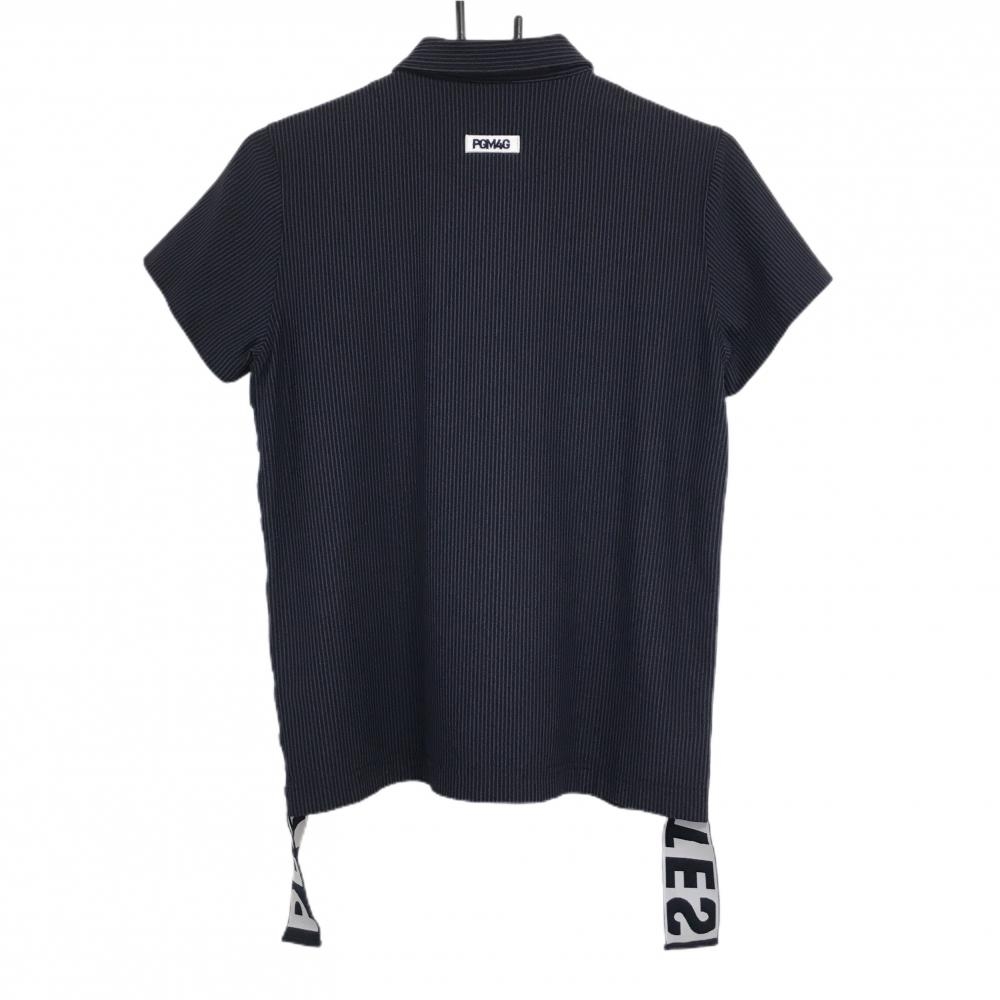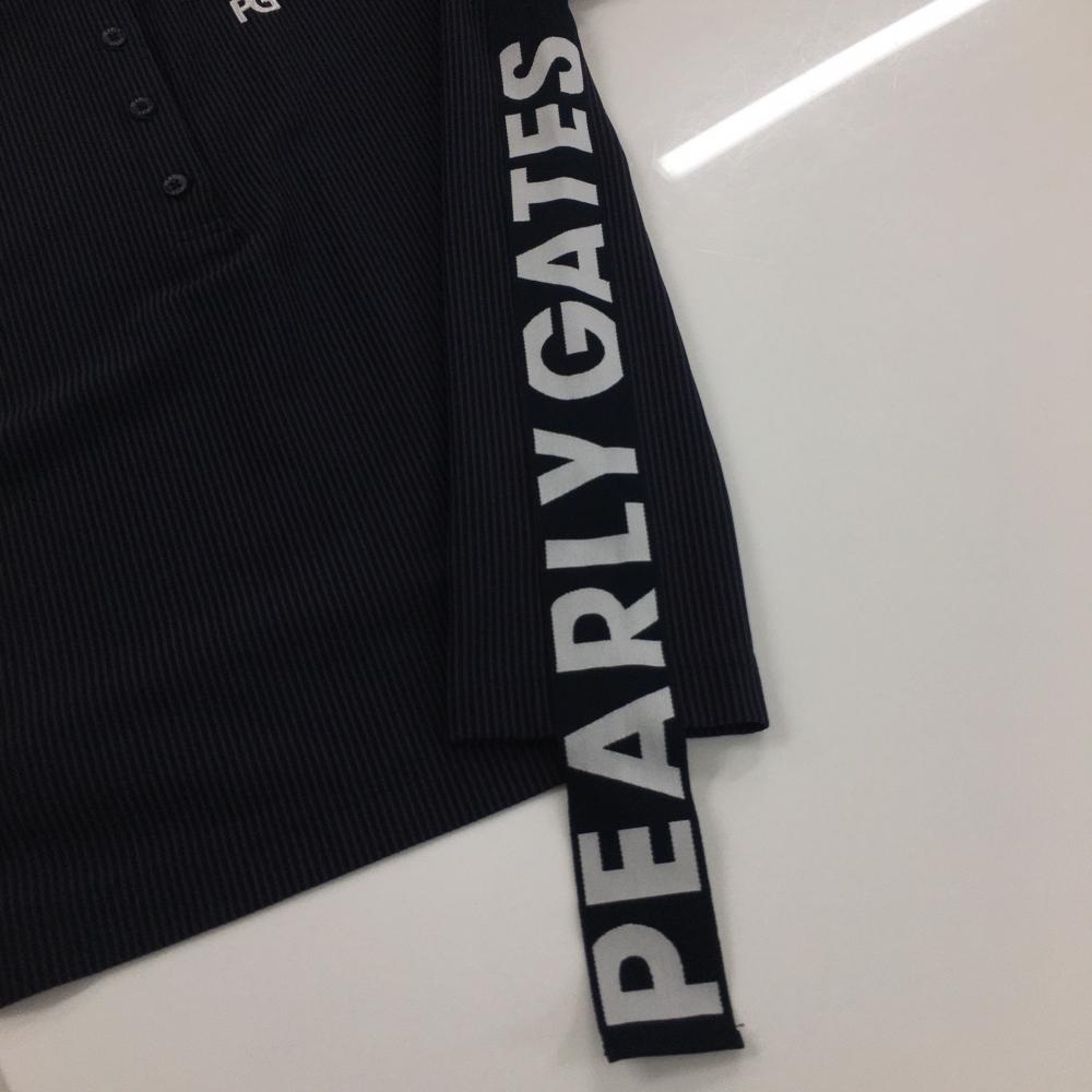 【超美品】パーリーゲイツ 半袖ポロシャツ ネイビー×黒 ストライプ サイドロゴ レディース 1(M) ゴルフウェア PEARLY GATES