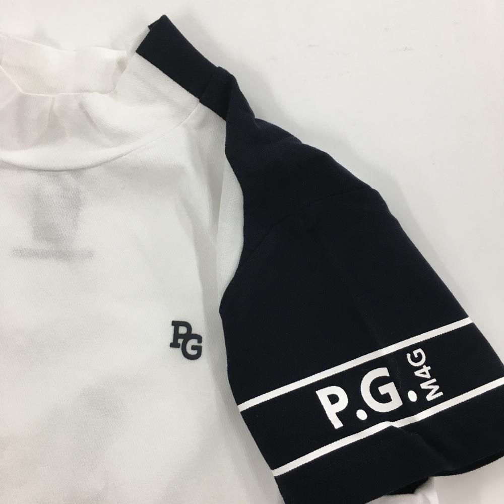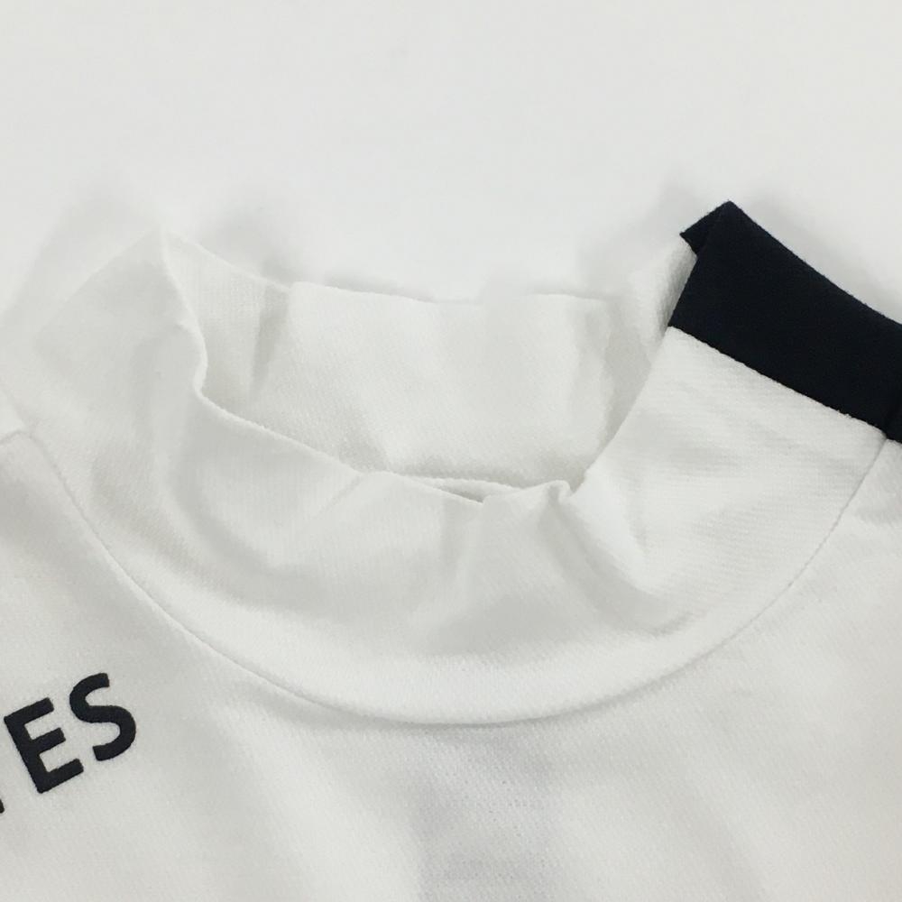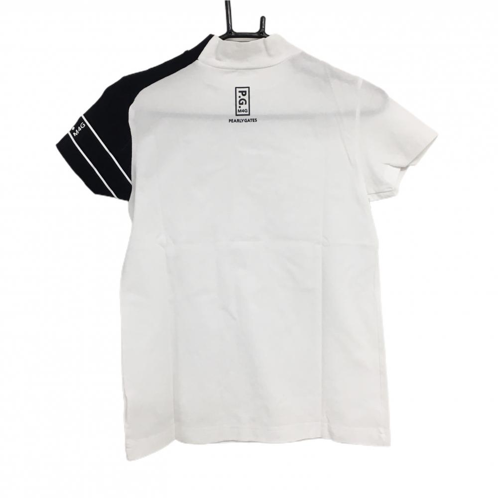 【美品】パーリーゲイツ 半袖ハイネックシャツ 白×黒 肩ロゴプリント レディース 0(S) ゴルフウェア 2023年モデル PEARLY GATES