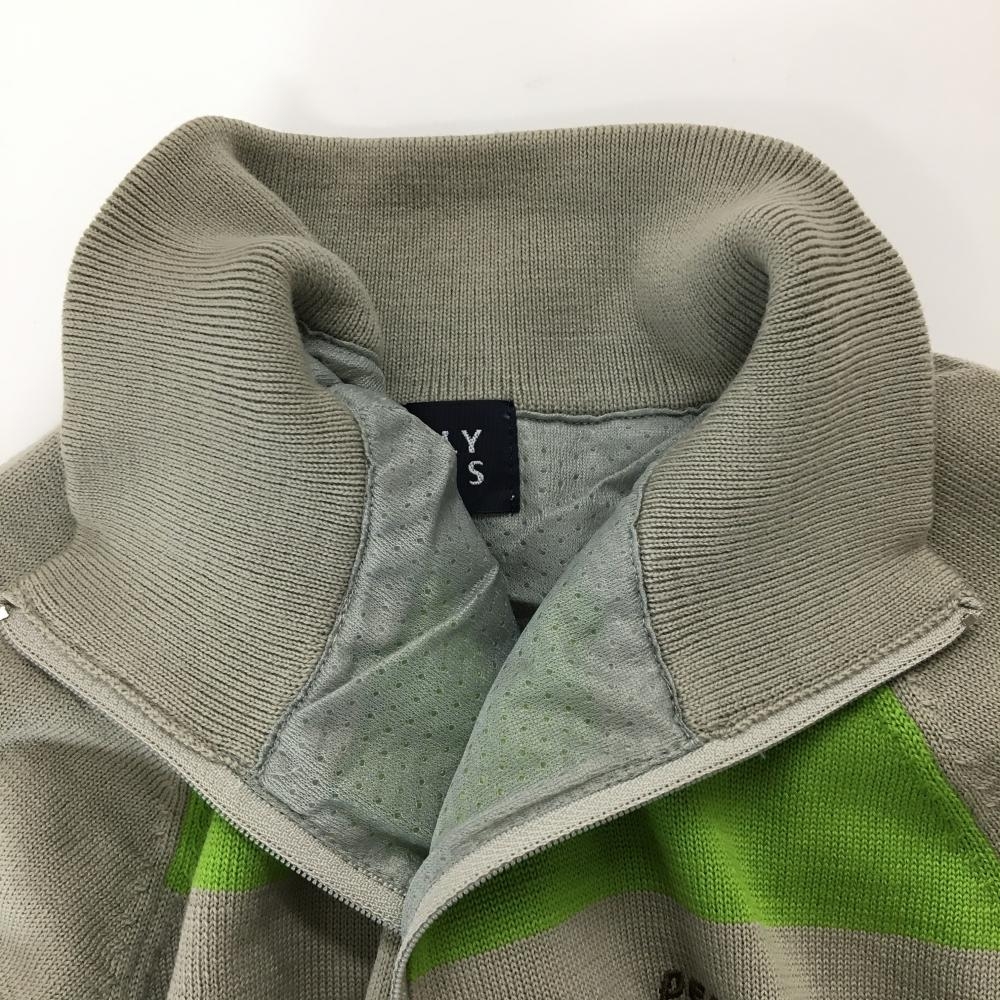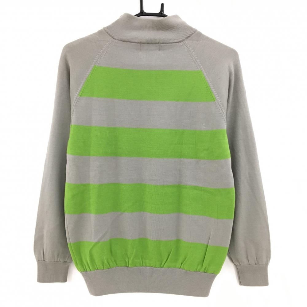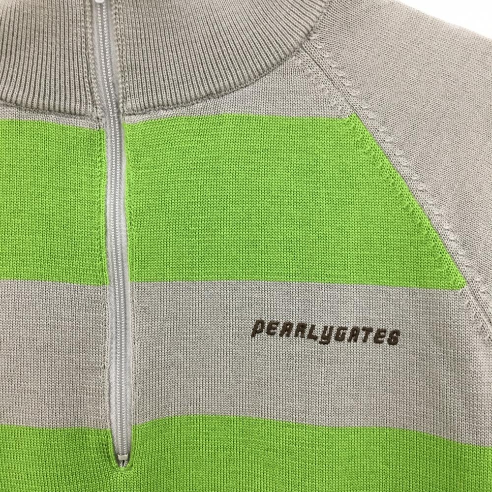 パーリーゲイツ 裏地付ハイネックセーター グレー×グリーン ハーフジップ レディース 1(M) ゴルフウェア PEARLY GATES