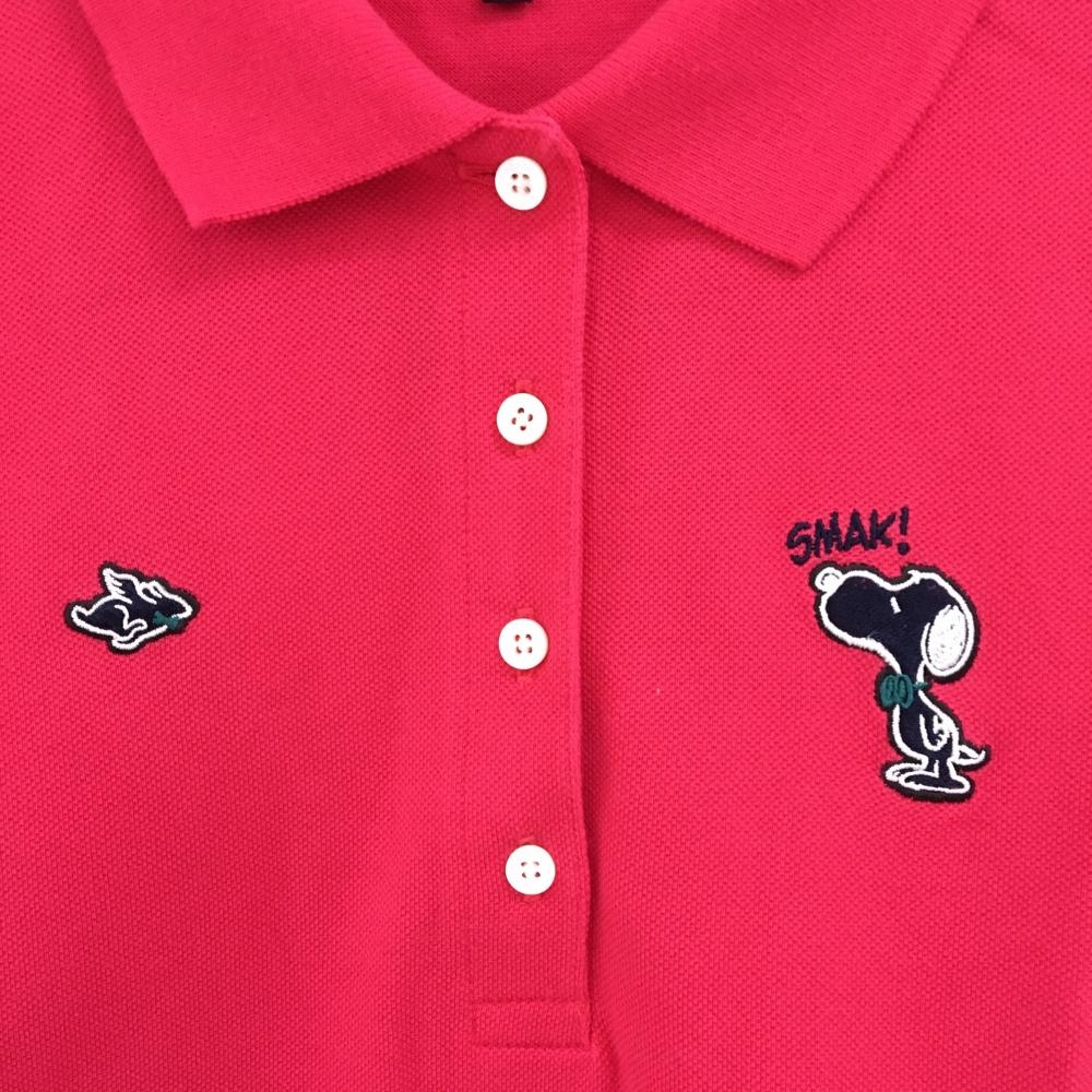 【超美品】パーリーゲイツ×PEANUTS 半袖ポロシャツ レッド スヌーピー レディース 0(S) ゴルフウェア PEARLY GATES