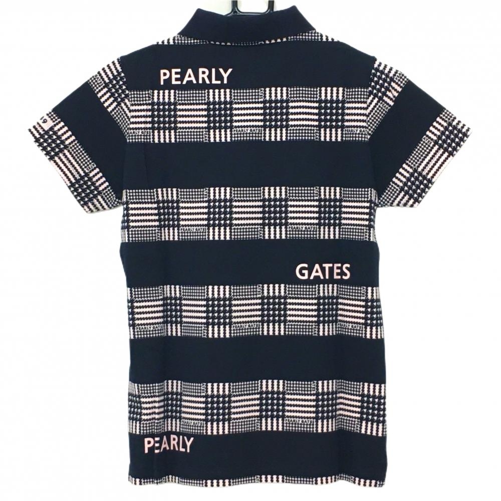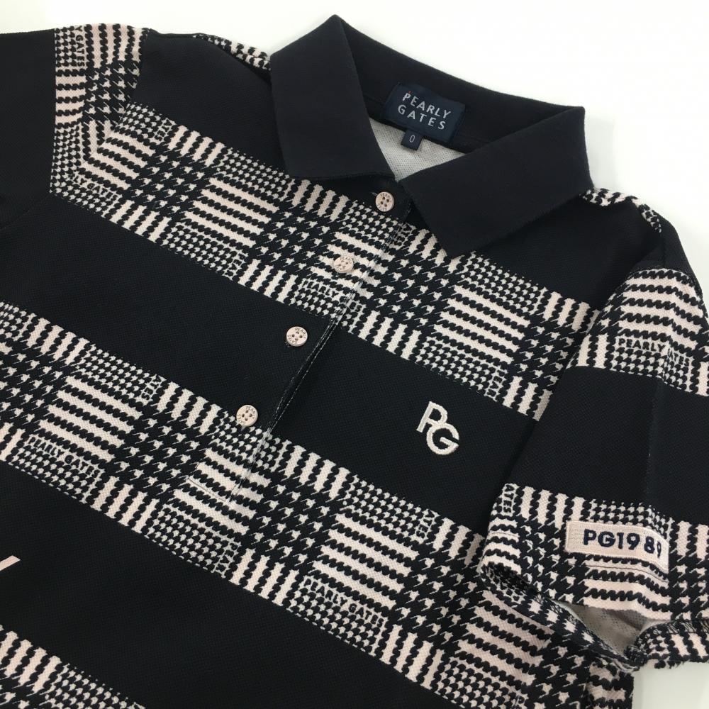 【超美品】パーリーゲイツ 半袖ポロシャツ ピンク×黒 ボーダー 千鳥格子 レディース 0(S) ゴルフウェア PEARLY GATES