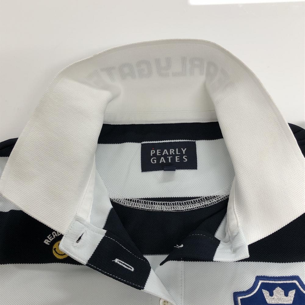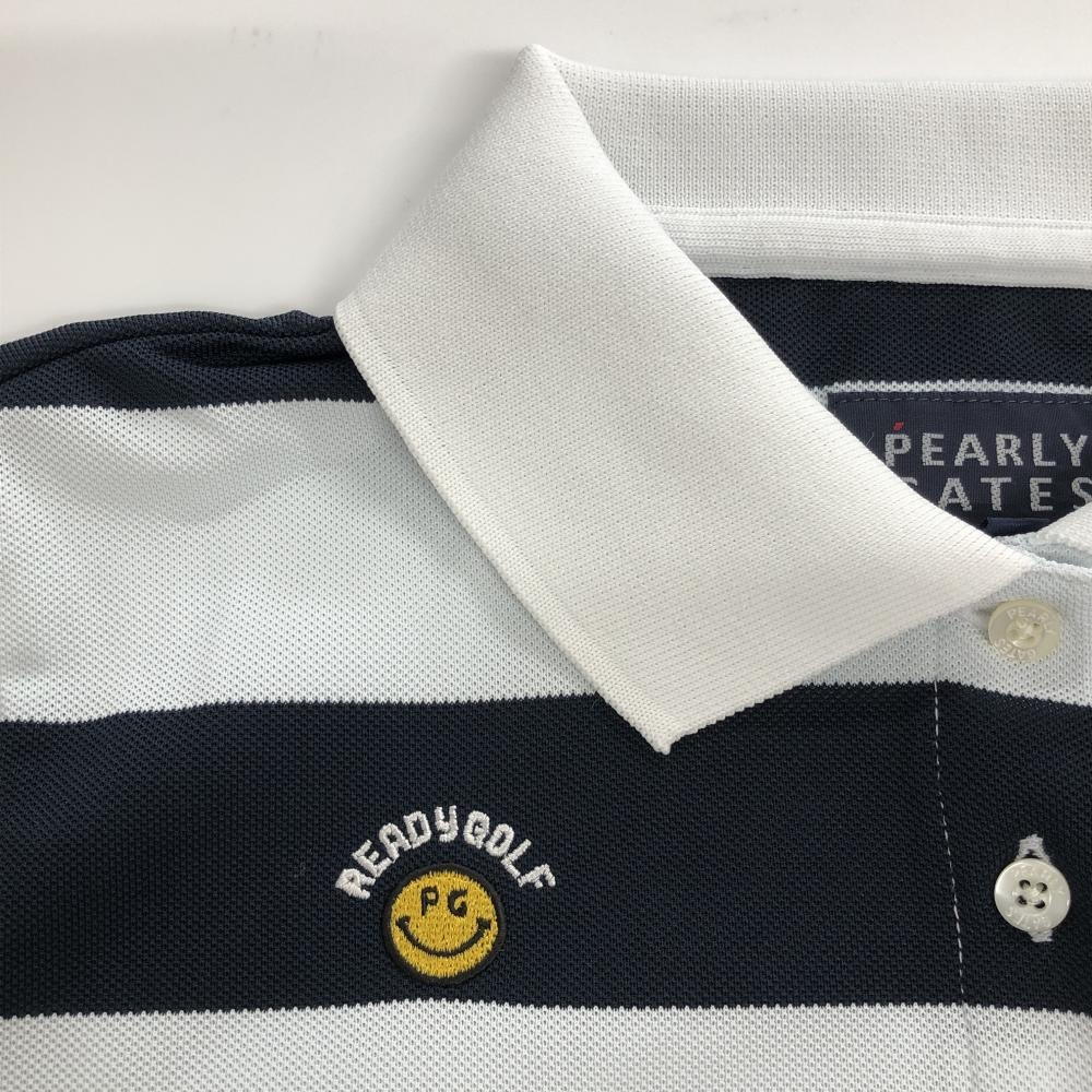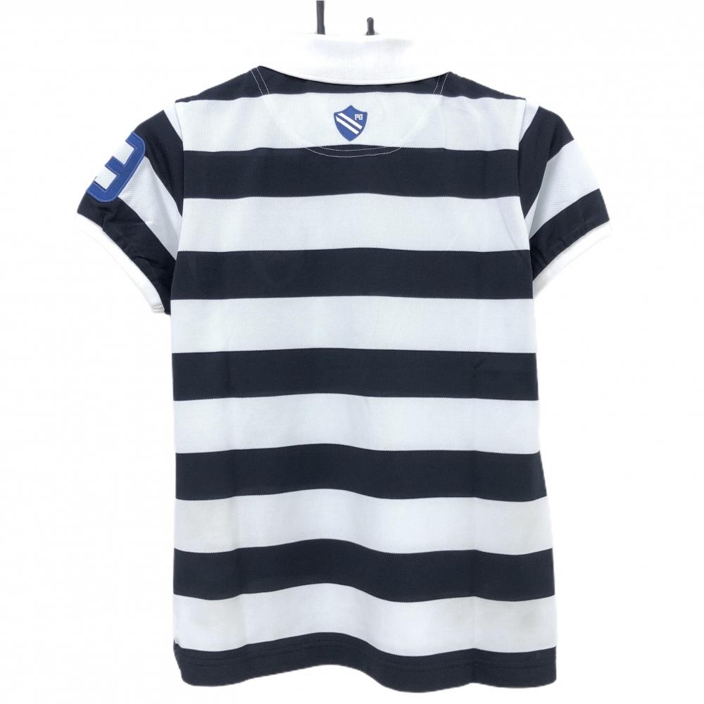 パーリーゲイツ 半袖ポロシャツ 白×ネイビー ボーダー レディース 1(M) ゴルフウェア PEARLY GATES