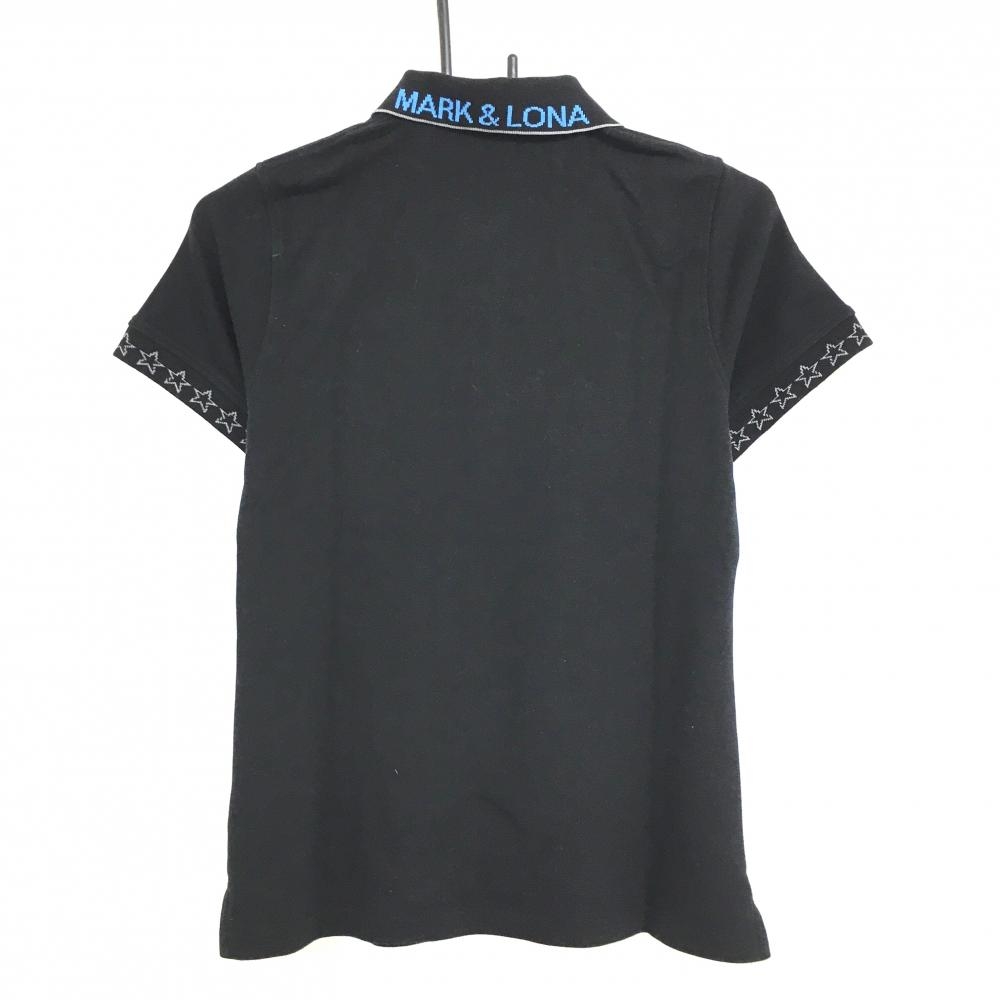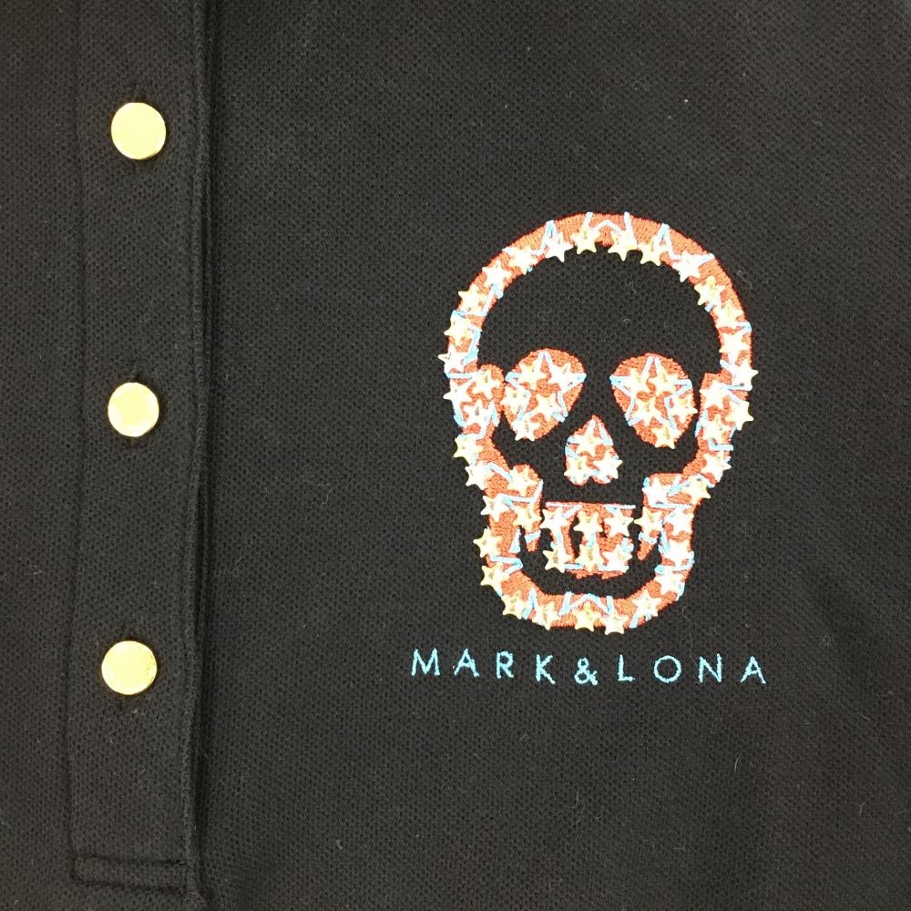 【美品】マークアンドロナ 半袖ポロシャツ 黒 スカル 袖口星 レディース M ゴルフウェア MARK&LONA
