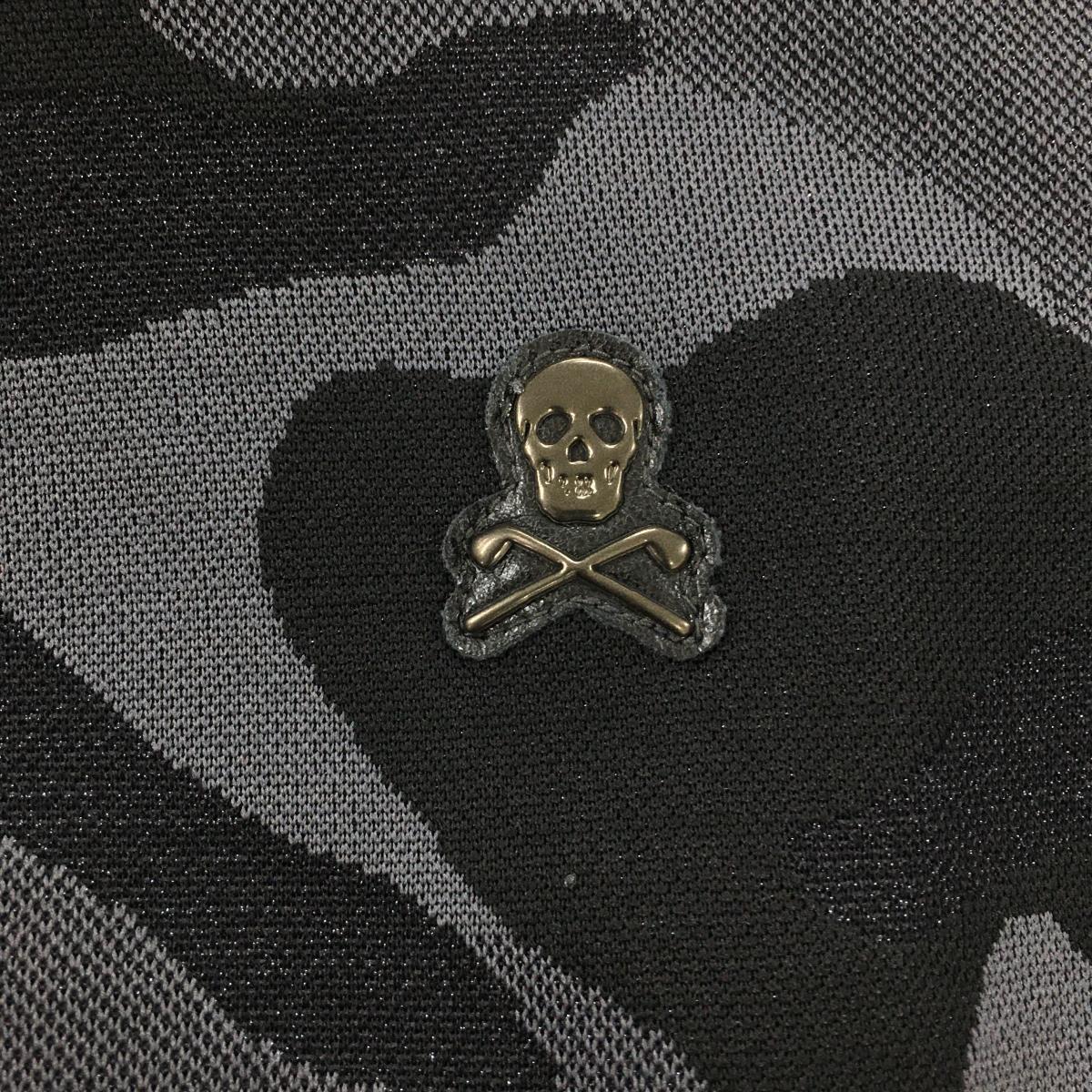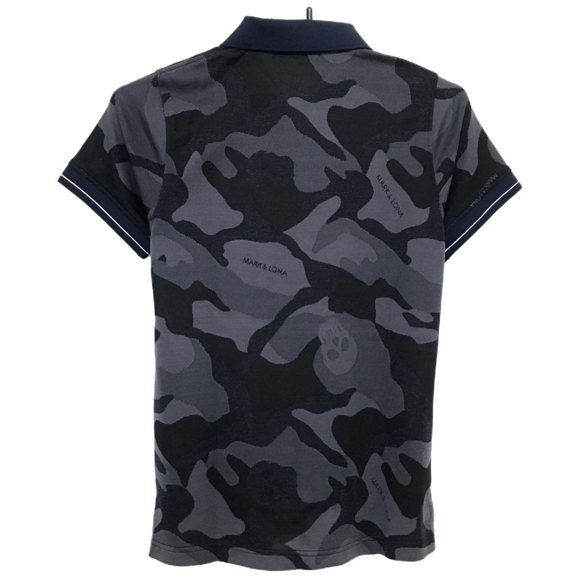 【美品】マークアンドロナ 半袖ポロシャツ 黒×グレー×ネイビー カモフラ地模様 スカル レディース M ゴルフウェア MARK&LONA