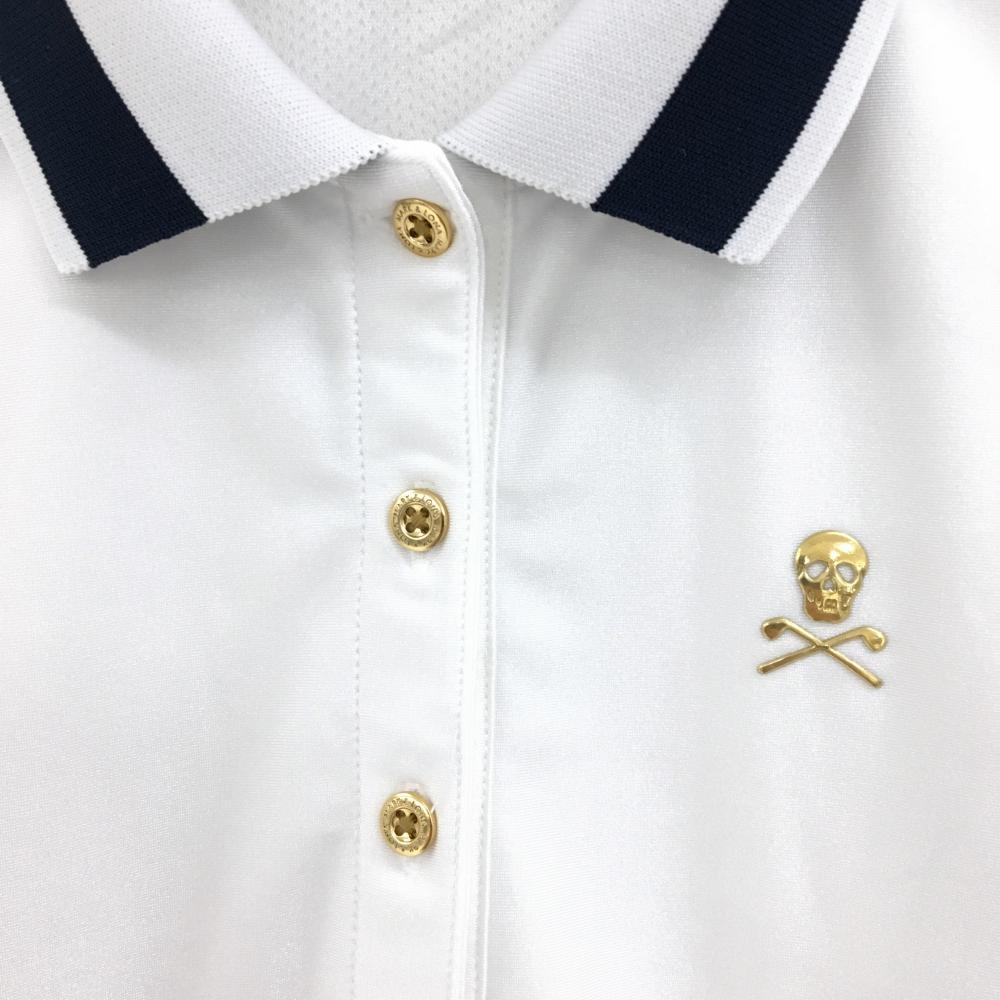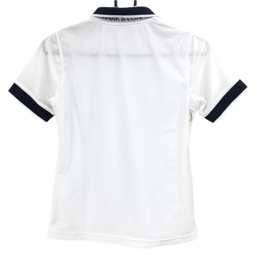 【美品】マークアンドロナ 半袖ポロシャツ 白×ネイビー スカル 後身頃裏地メッシュ レディース M ゴルフウェア MARK&LONA
