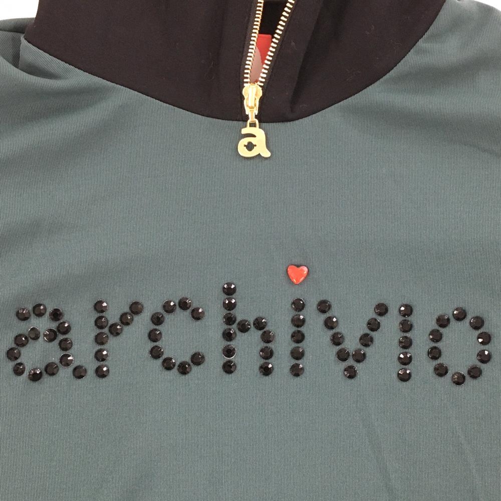 【美品】アルチビオ 長袖シャツ グリーン×黒 ジップ 胸ロゴ レディース 38(M) ゴルフウェア archivio