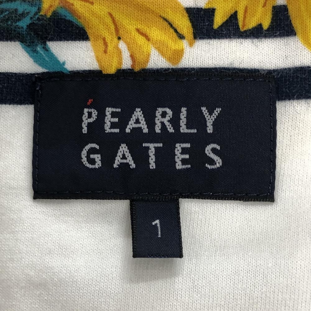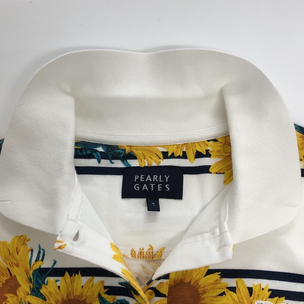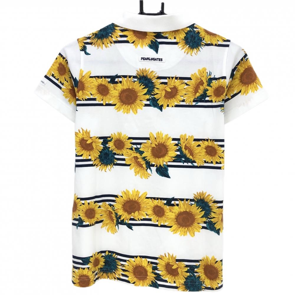 パーリーゲイツ 半袖ポロシャツ 白×イエロー ヒマワリ柄 レディース 1(M) ゴルフウェア PEARLY GATES