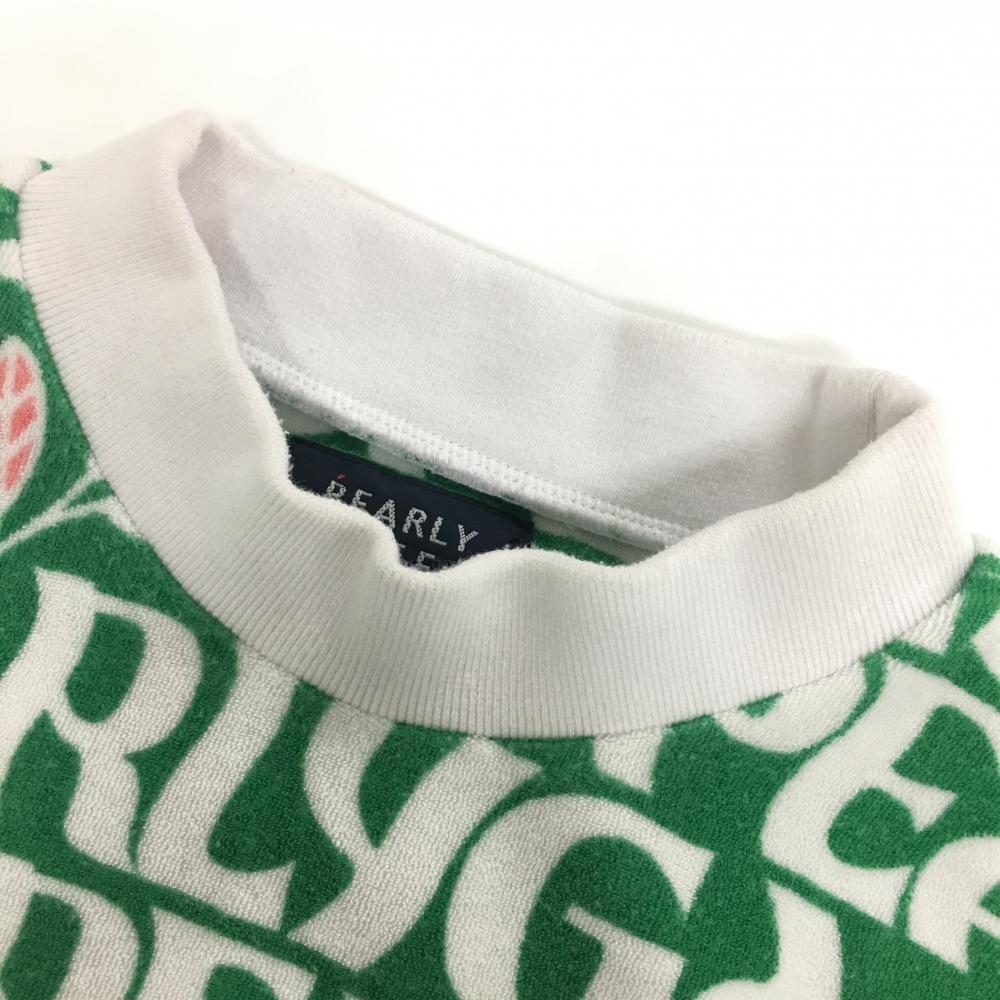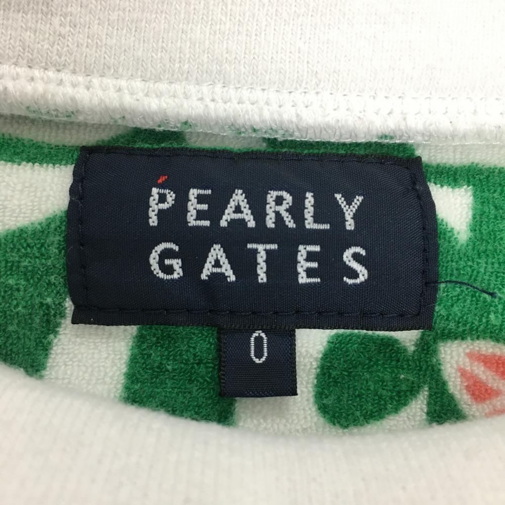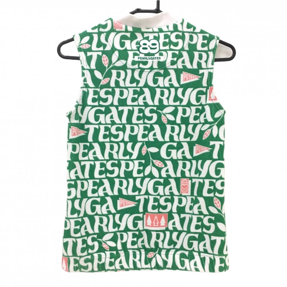 パーリーゲイツ ノースリーブハイネックシャツ グリーン×白 パイル地 ロゴ総柄 レディース 0(S) ゴルフウェア PEARLY GATES