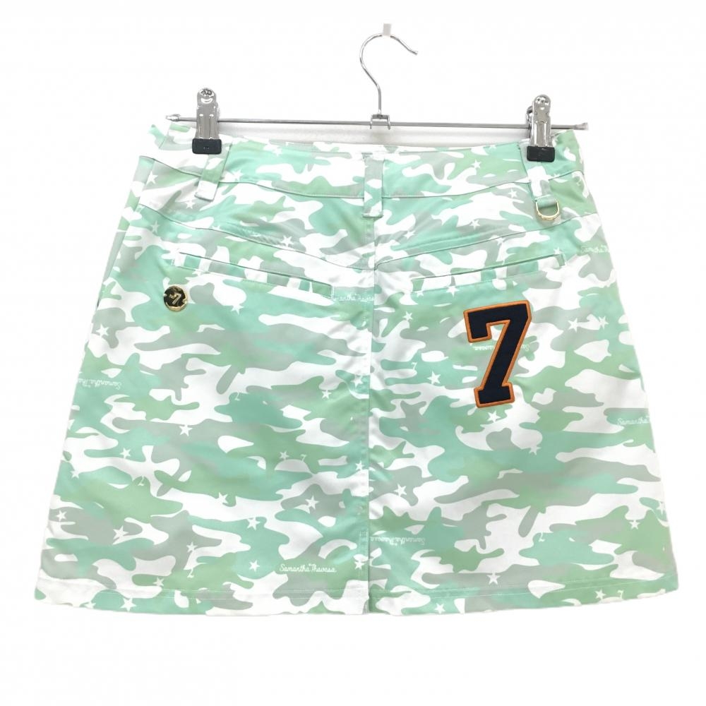 【美品】サマンサタバサ№7 スカート ライトグリーン×白 カモフラ 迷彩 レディース 38(M) ゴルフウェア Samantha Thavasa