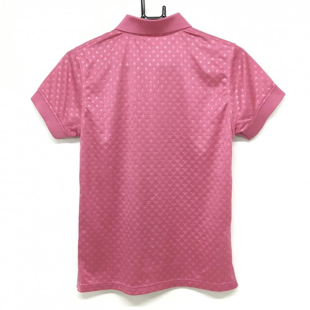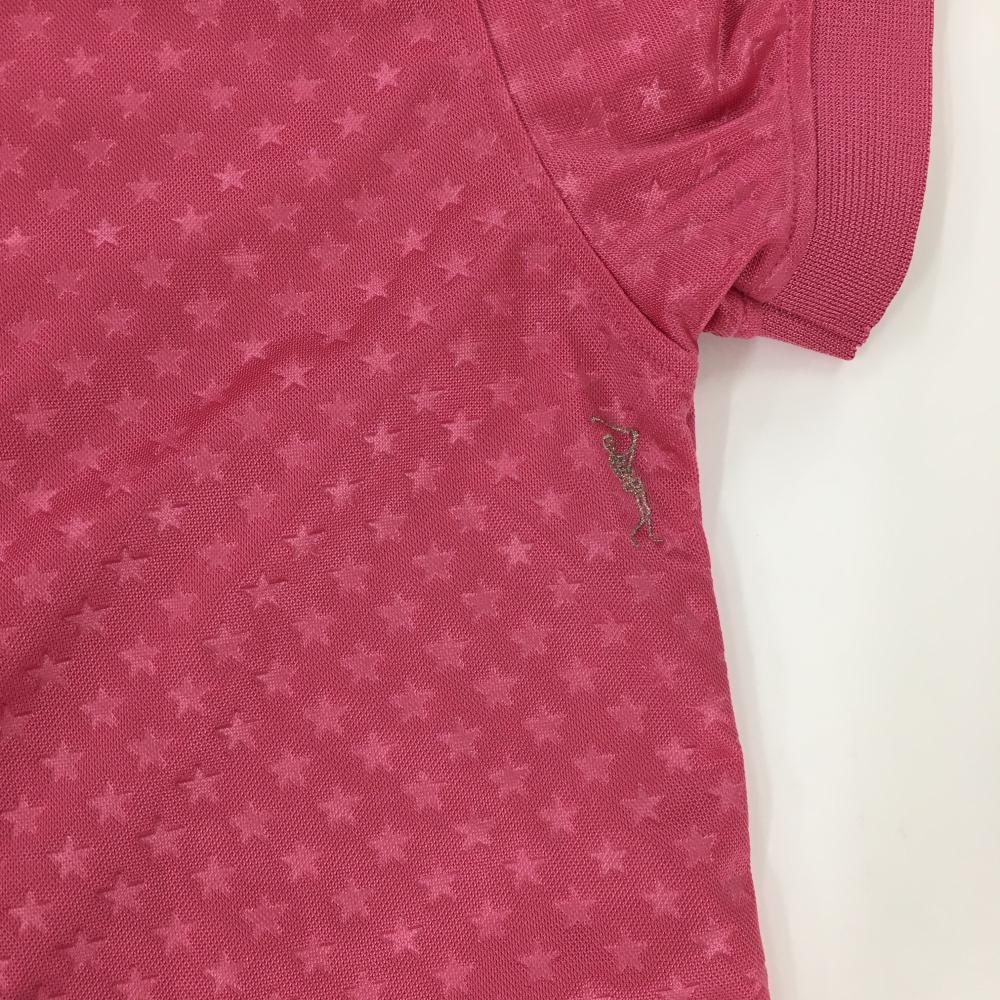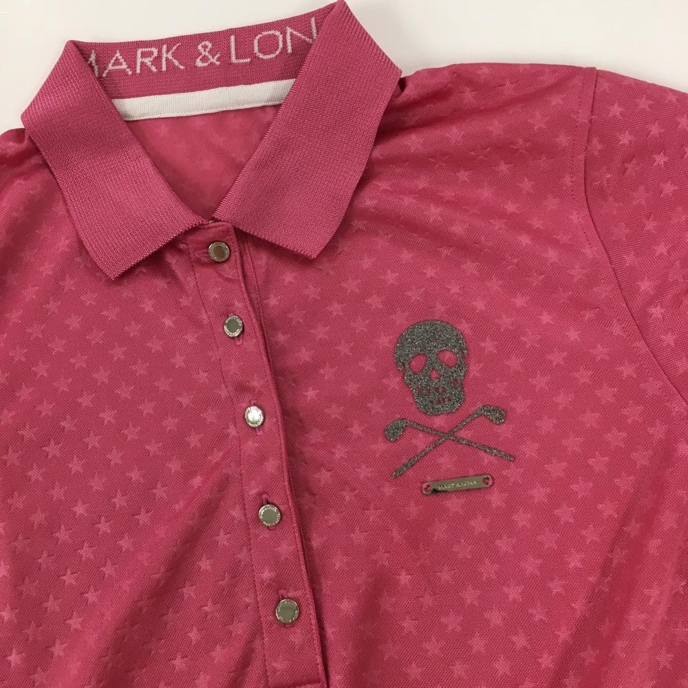 【超美品】マークアンドロナ 半袖ポロシャツ ピンク 星総柄織生地 スカル 襟ロゴ レディース M ゴルフウェア MARK&LONA