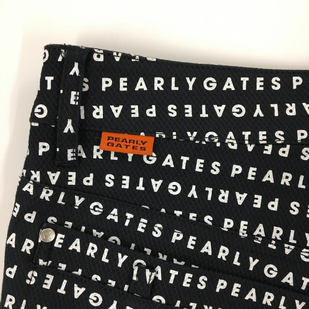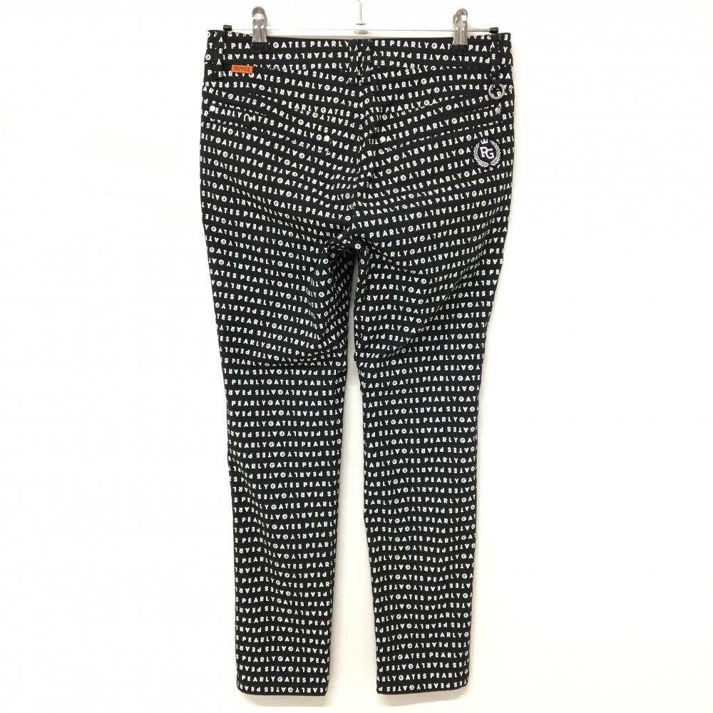 【超美品】パーリーゲイツ パンツ 黒×白 ロゴ総柄 レディース 1(M) ゴルフウェア PEARLY GATES