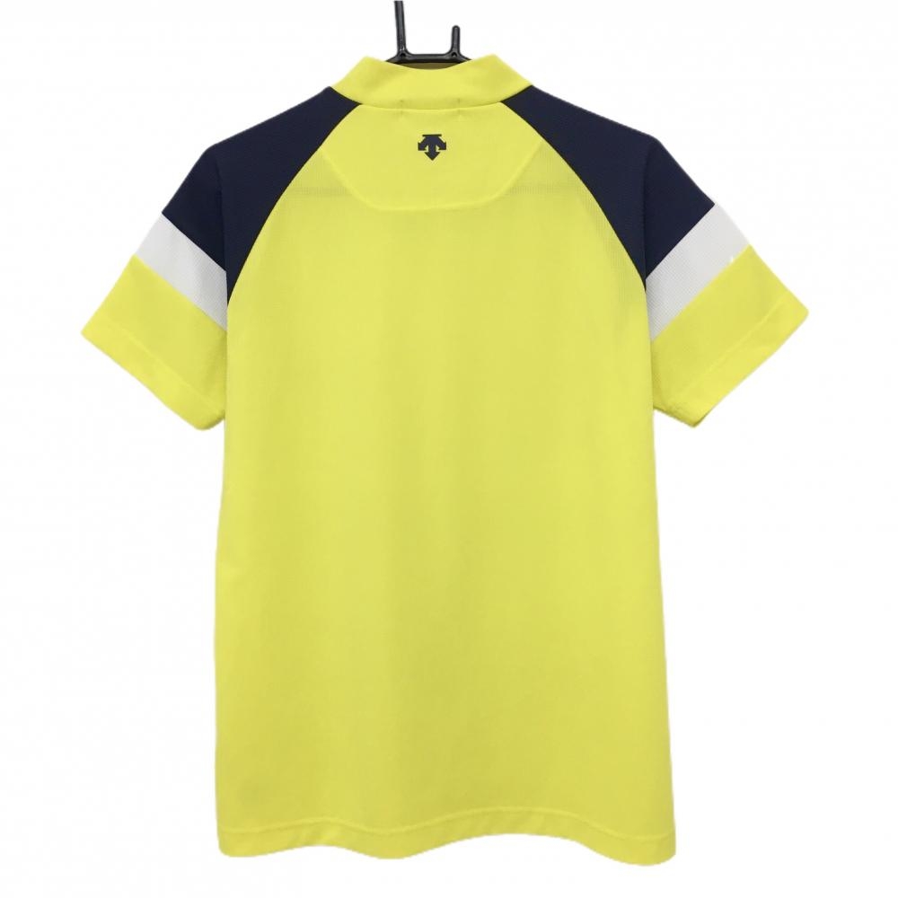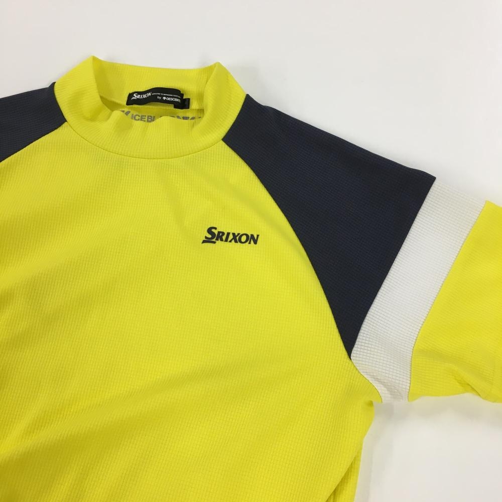 【超美品】スリクソンバイデサント 半袖ハイネックシャツ イエロー×ネイビー ICEBLAST 袖配色 メンズ M ゴルフウェア SRIXON