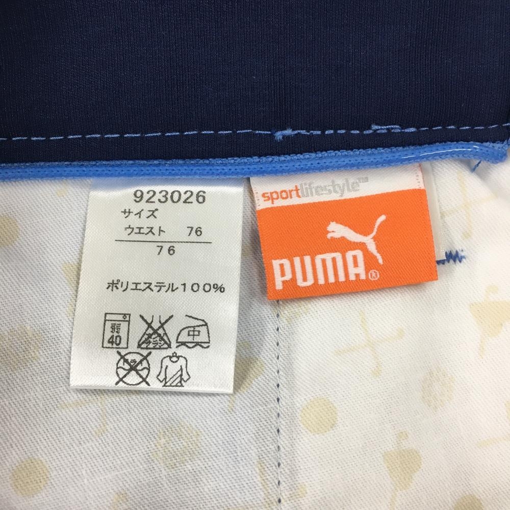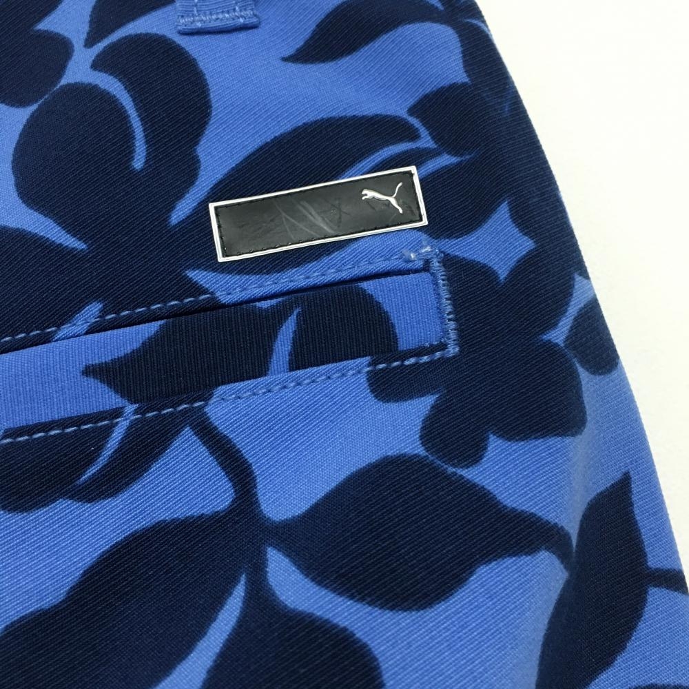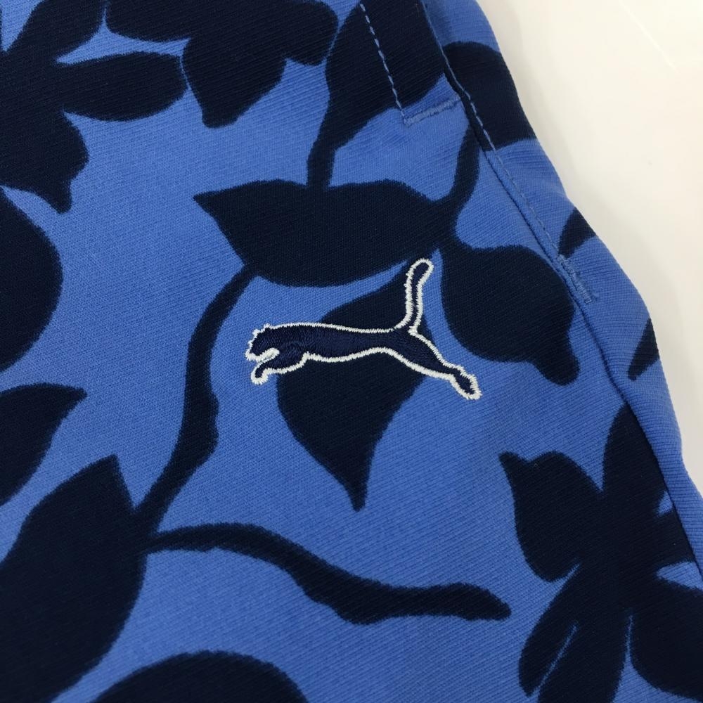 【超美品】プーマ パンツ ブルー×ネイビー リーフ柄 ストレッチ メンズ 76 ゴルフウェア PUMA