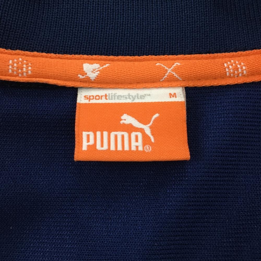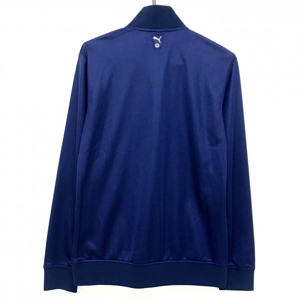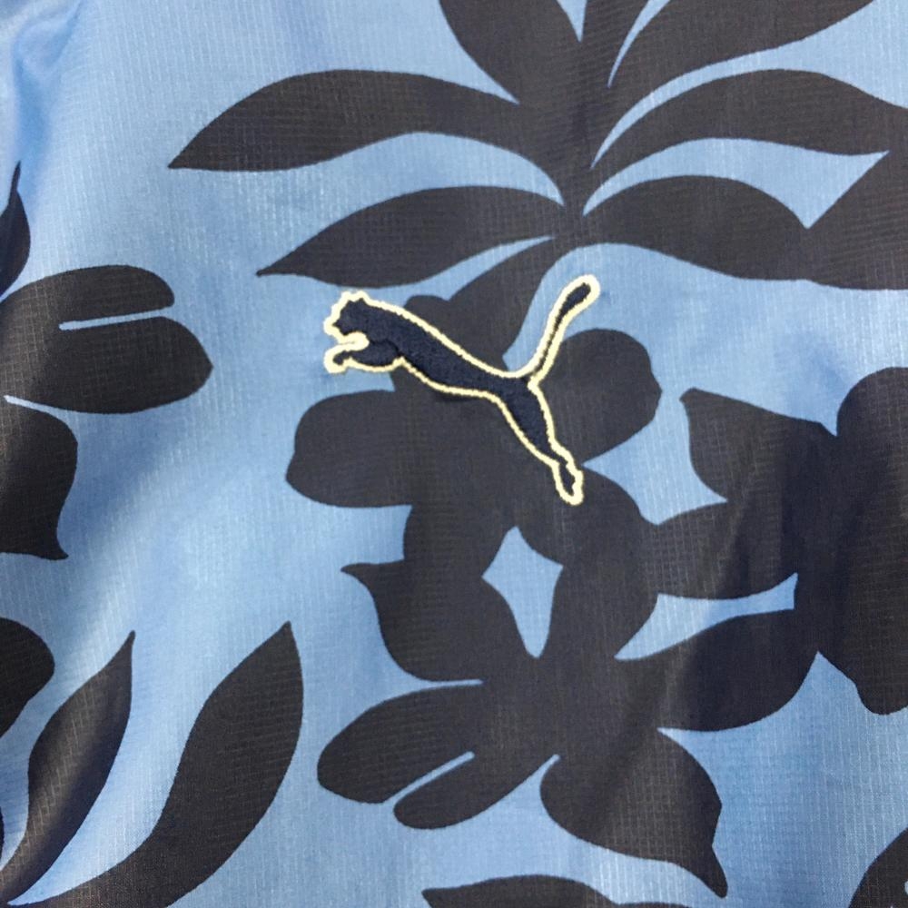 【超美品】プーマ ジャケットブルゾン ネイビー×ブルー フロントリーフ柄 ロゴ刺しゅう メンズ M ゴルフウェア PUMA