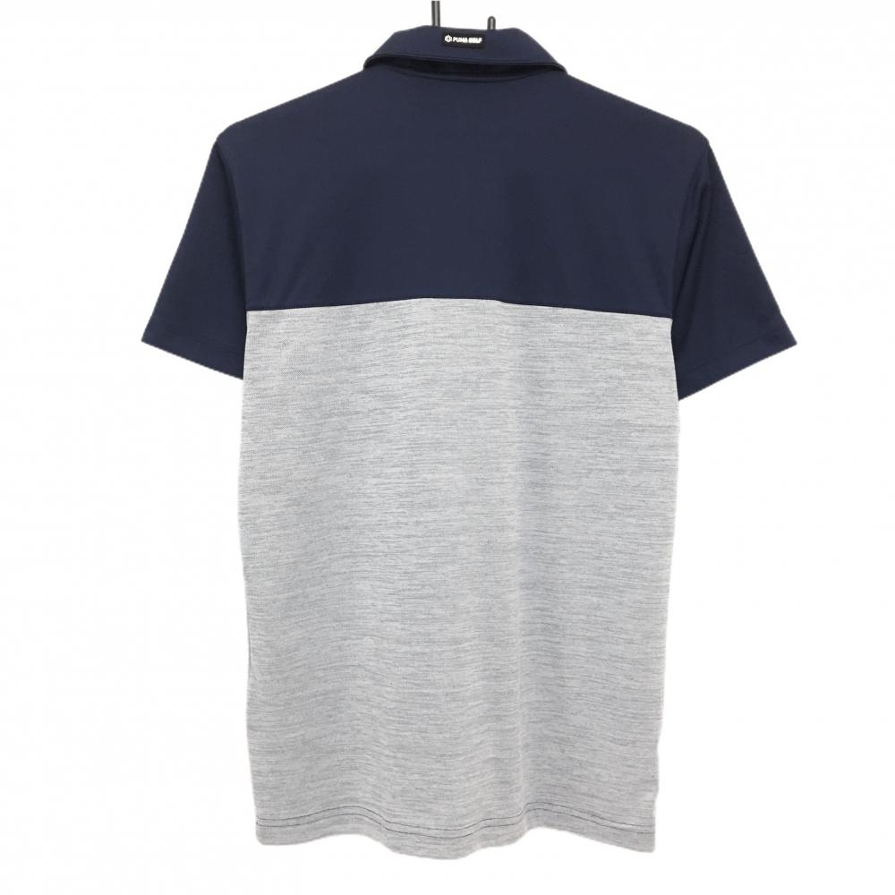 【超美品】プーマ 半袖ポロシャツ ネイビー×グレー バイカラー ロゴ刺しゅう メンズ M ゴルフウェア PUMA