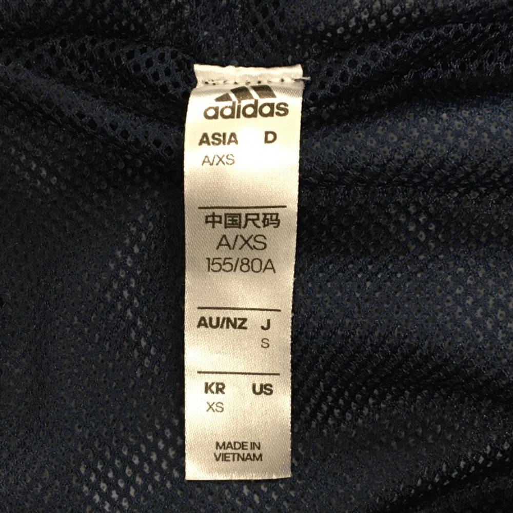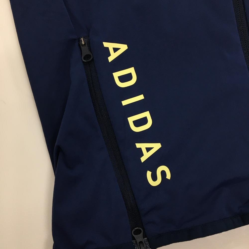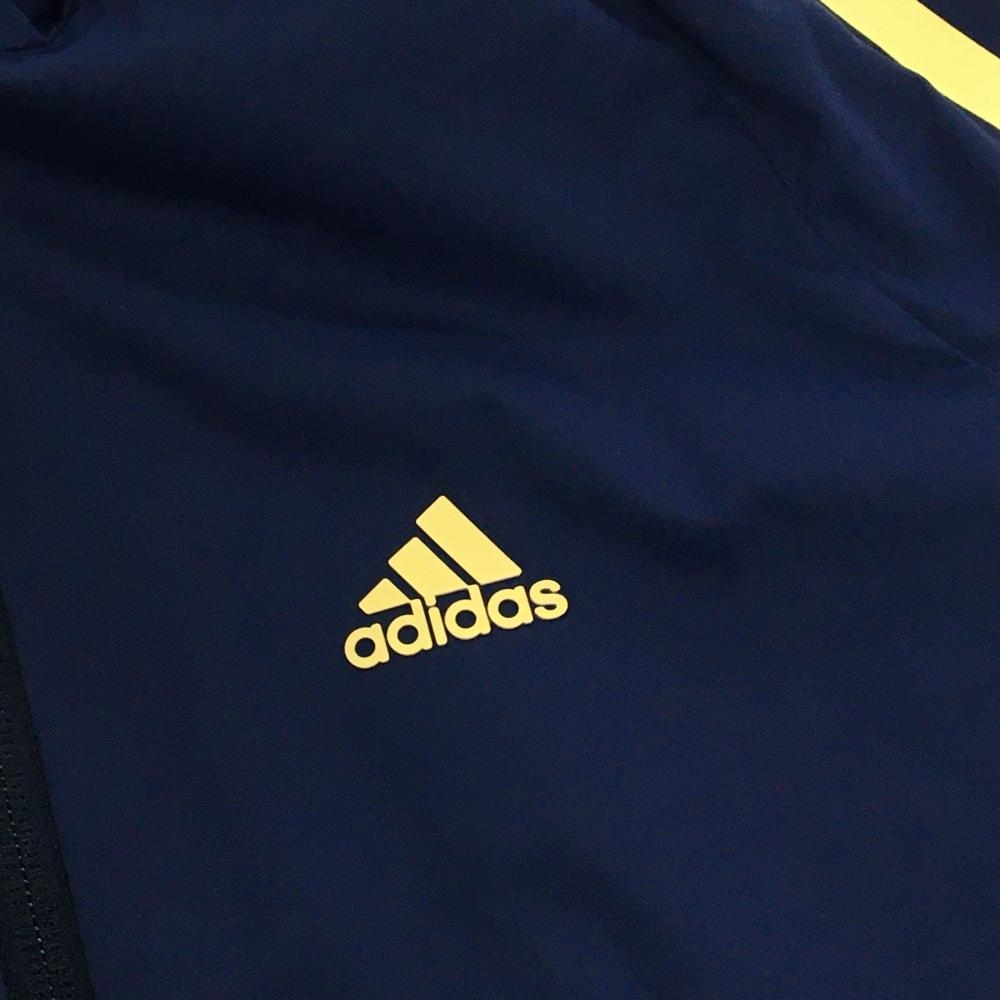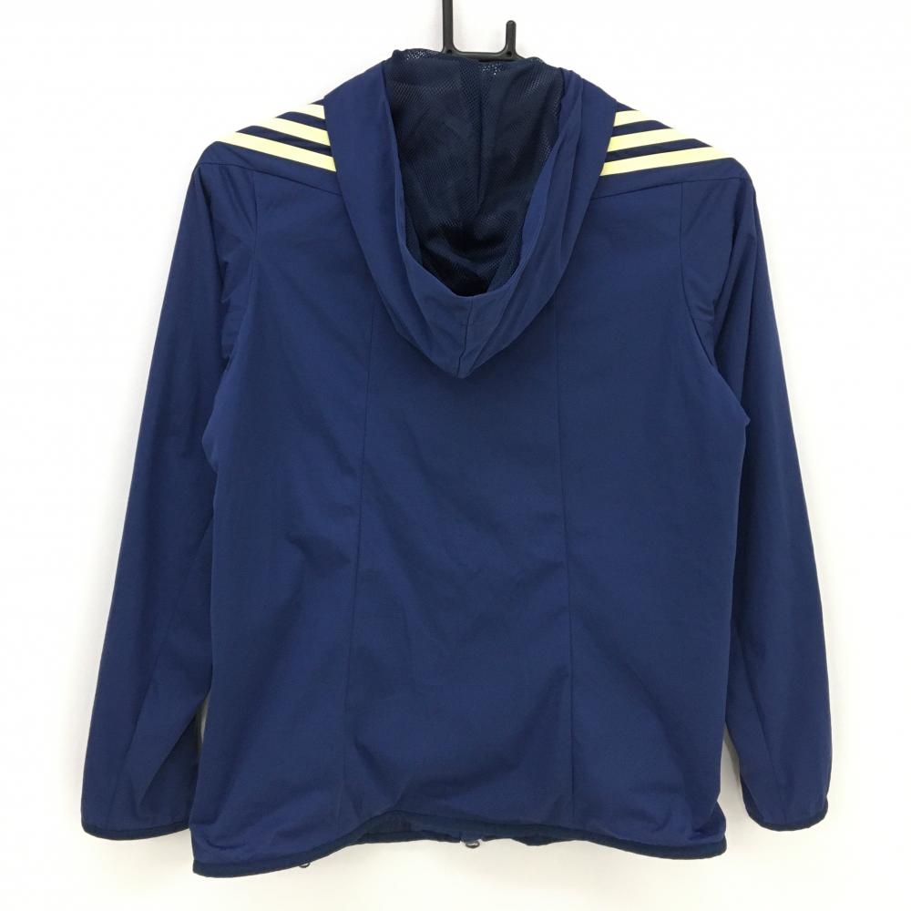 【超美品】アディダス ナイロンジップパーカー ネイビー×ライトイエロー 裏地メッシュ 3ライン レディース S ゴルフウェア adidas