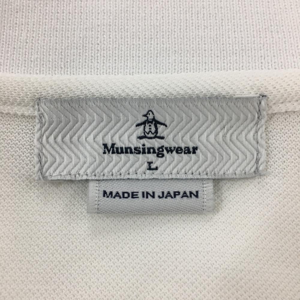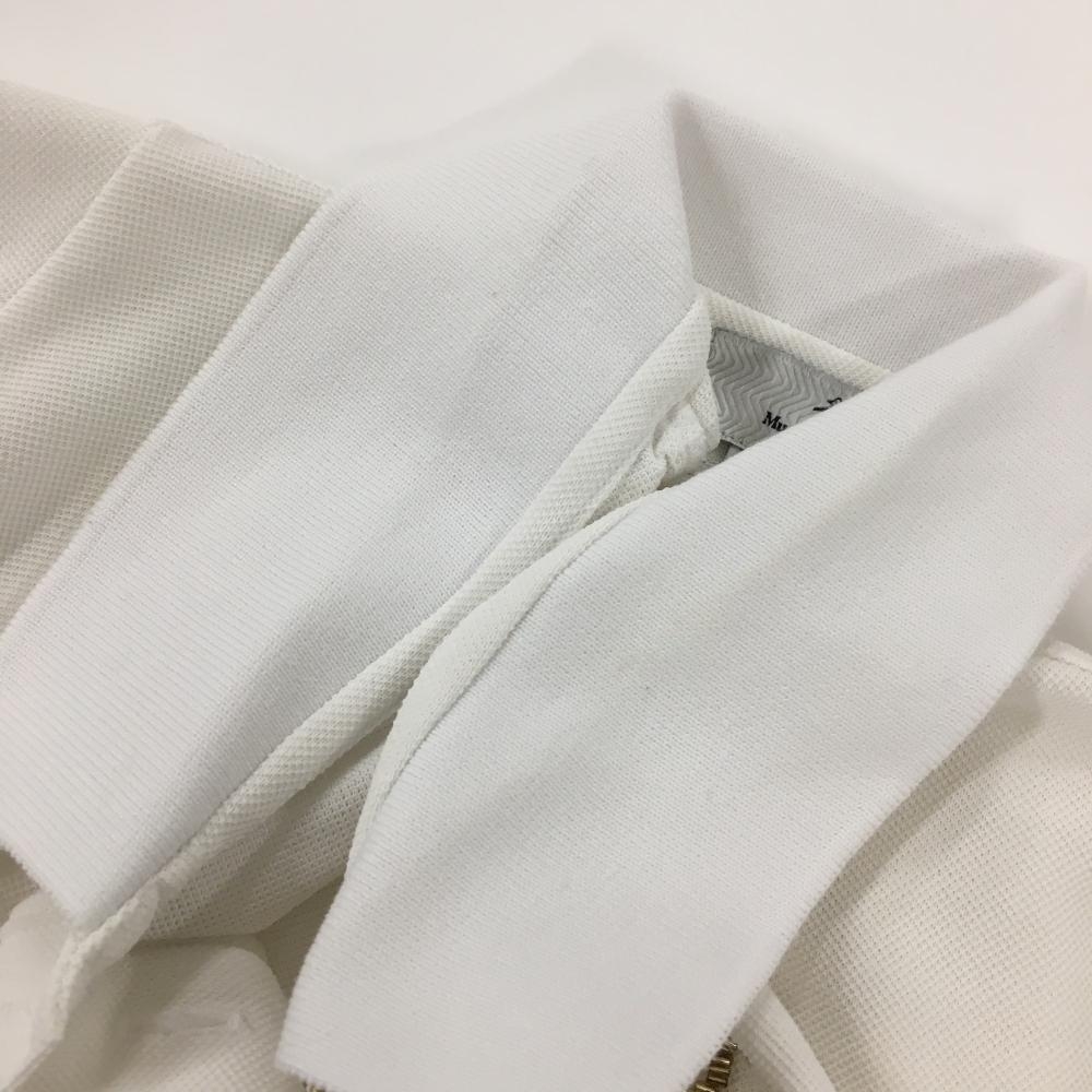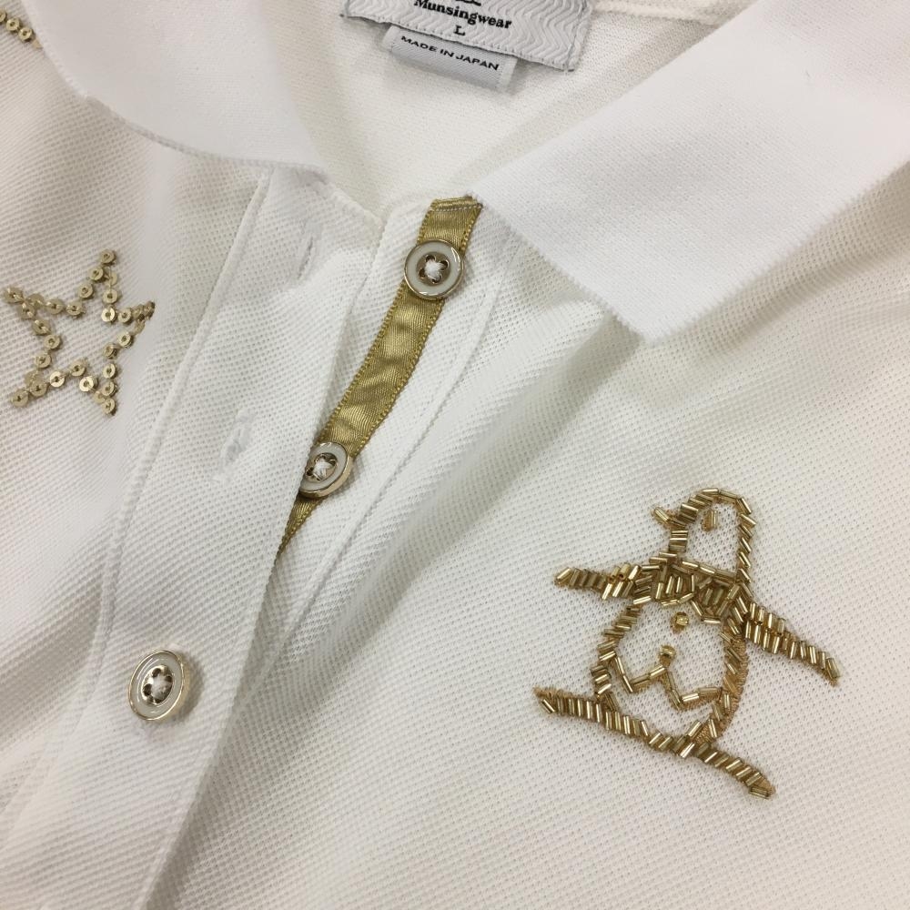 マンシングウェア 半袖ポロシャツ 白×ゴールド ロゴビーズ 星 チュニック丈 襟汚れ レディース L ゴルフウェア Munsingwear