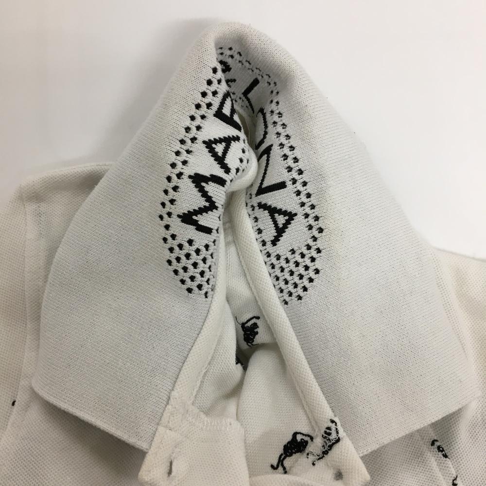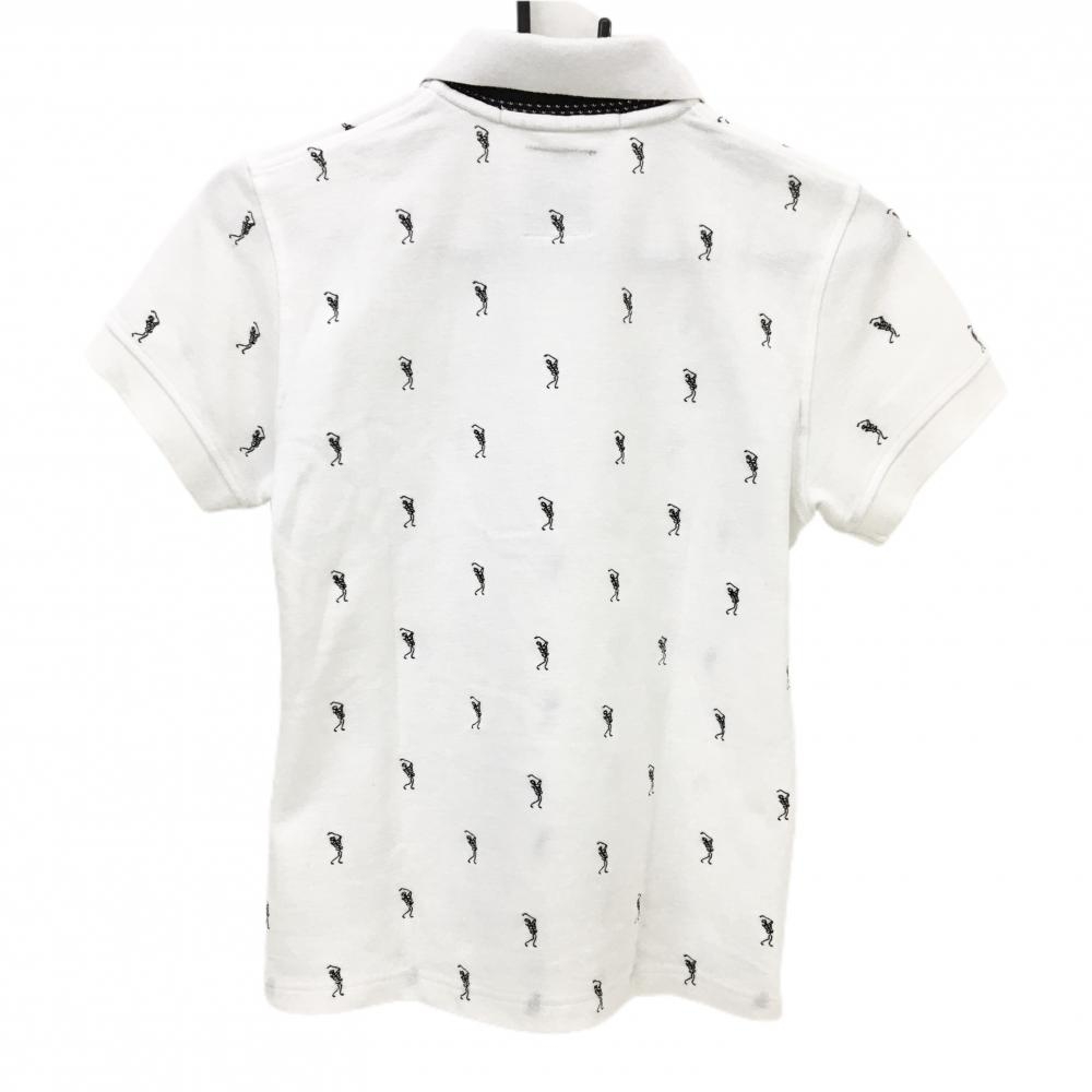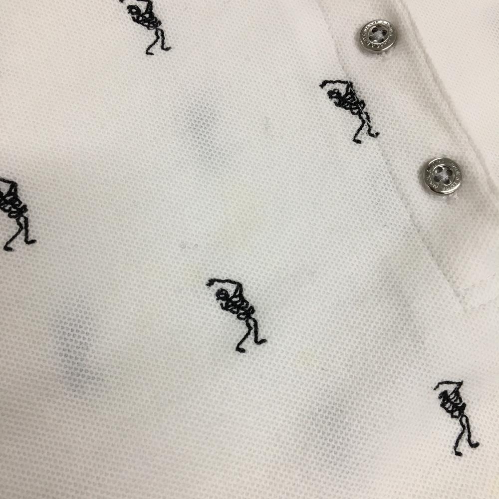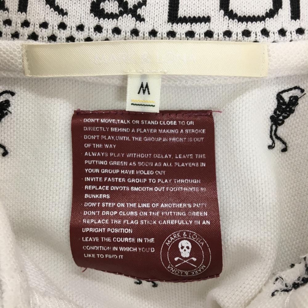 マークアンドロナ 半袖ポロシャツ 白×黒 ゴルファースカル総柄刺しゅう レディース M ゴルフウェア MARK&LONA