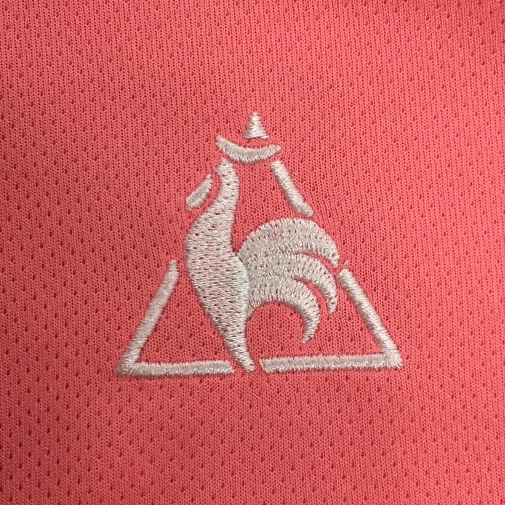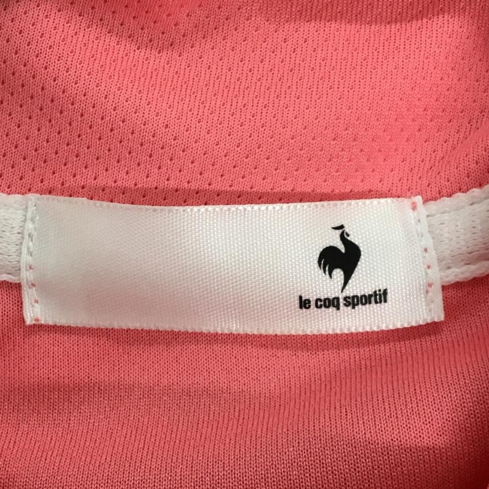 【美品】ルコック 半袖ハイネックシャツ ライトピンク×白 ロゴ刺しゅう ハーフジップ レディース O ゴルフウェア le coq sportif