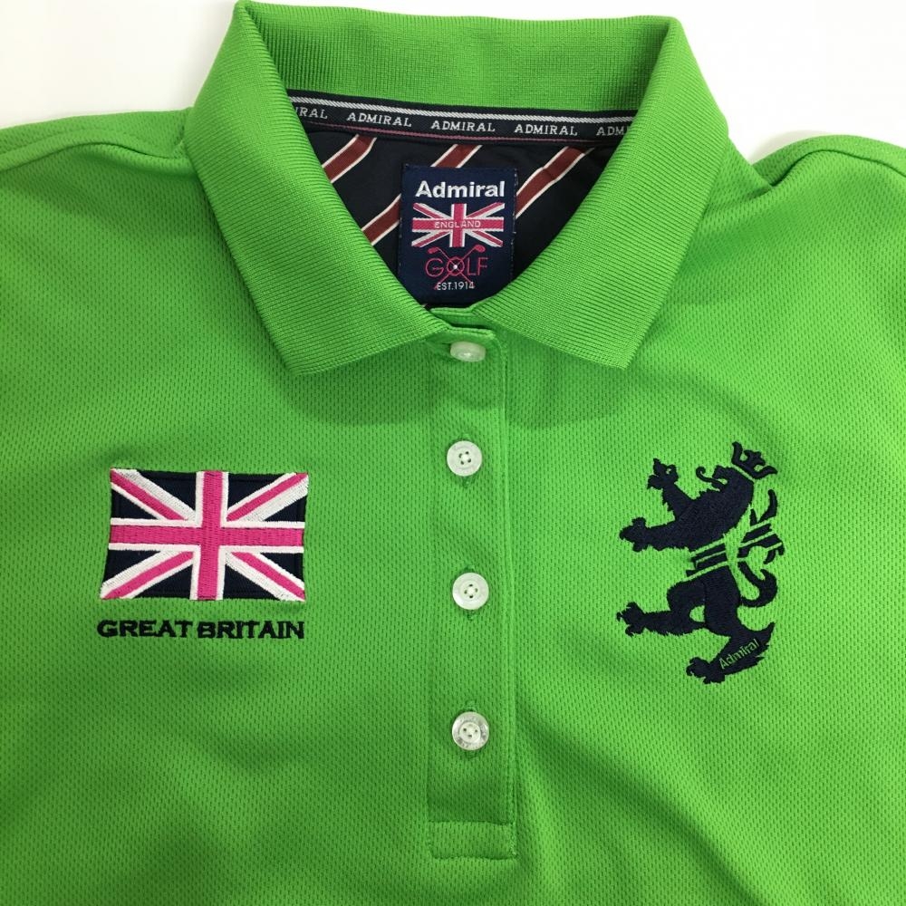 【美品】アドミラル 半袖ポロシャツ ライトグリーン×ネイビー ロゴ刺しゅう レディース M ゴルフウェア Admiral